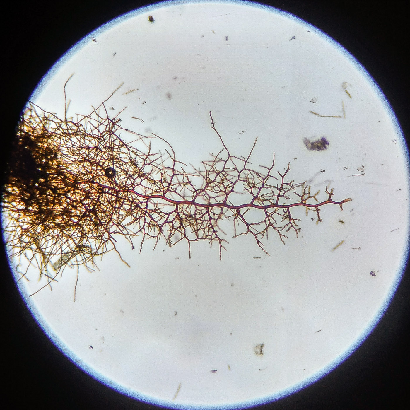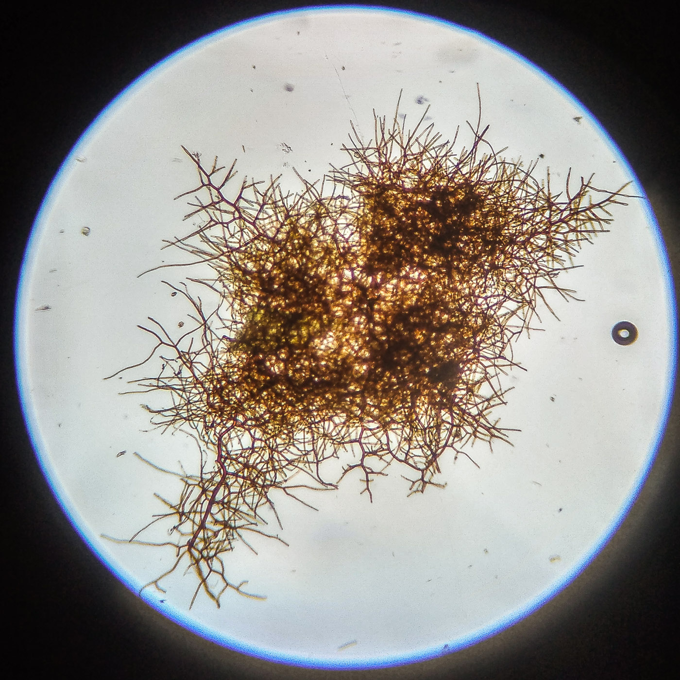 Верхушки побегов с ризоидным войлоком. Свердловская обл., окр. г. Заречный, заболоченный берёзовый участок леса. 20.10.2025.