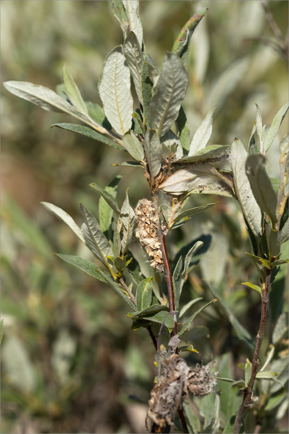 Часть веточки с соплодием. Карелия, восточный берег оз. Топозеро, облесённый край песчаного пляжа у границы с низинным болотом. 01.08.2025.