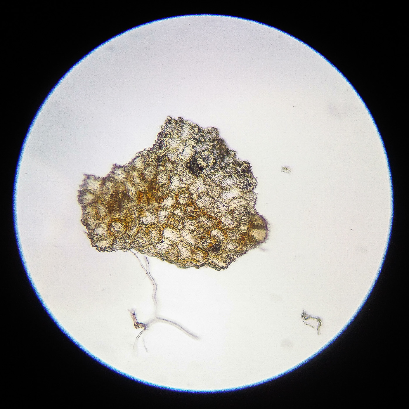 Подушечковидная дерновинка на камне в окружении лишайника Umbilicaria deusta. Свердловская обл., окр. г. Заречный, ур. Черемшанское болото, выход камней в берёзово-сосновом лесу, пойма р. Камышенка. 21.07.2025.