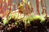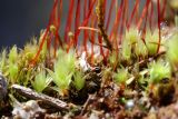 Спорогоны (внизу — гаметофиты мхов этого и другого видов). Ленинградская обл., Гатчинский р-н, окр. пос. Пудость, заброшенный травертиновый карьер, на крыше заброшенного земляного погреба. 21.05.2025.