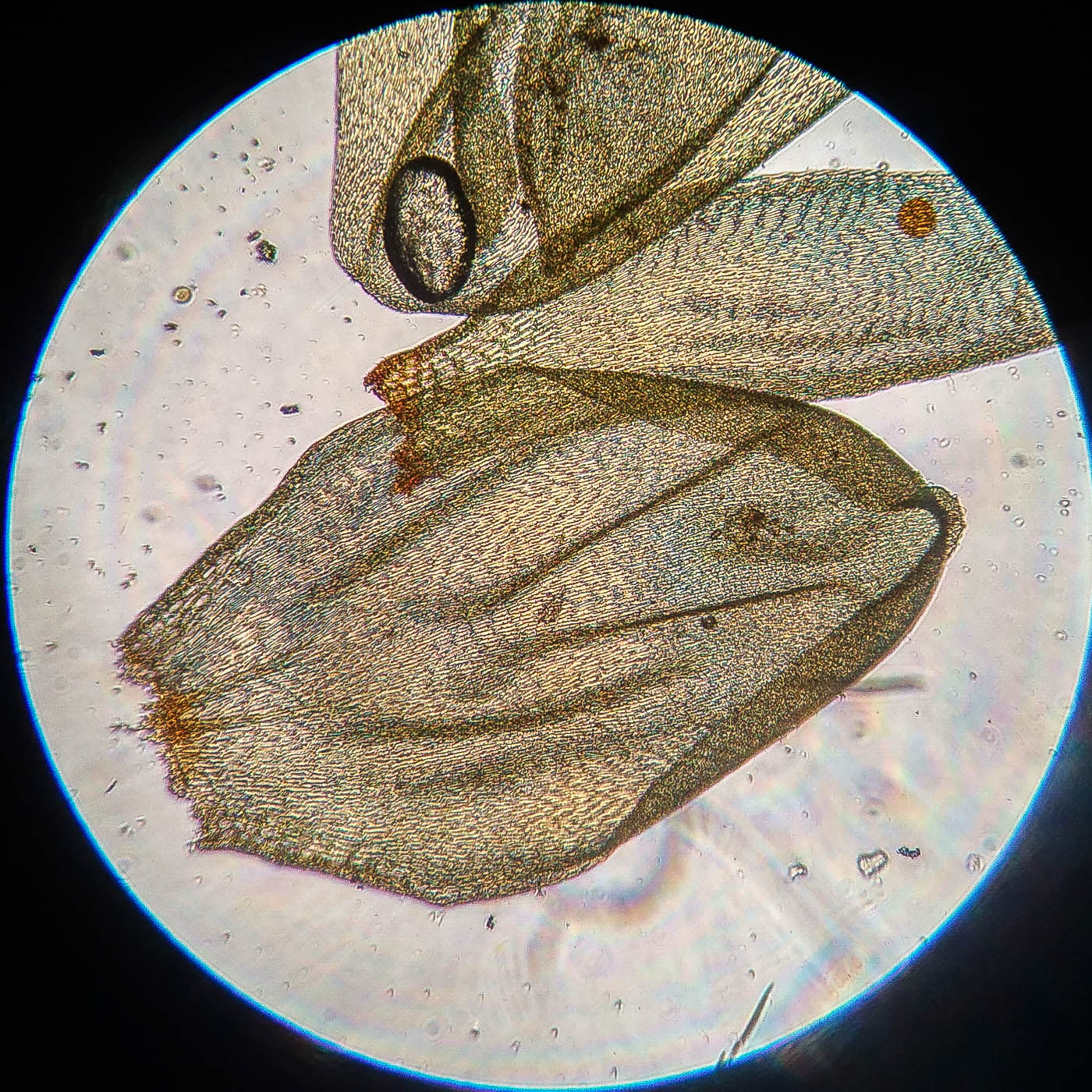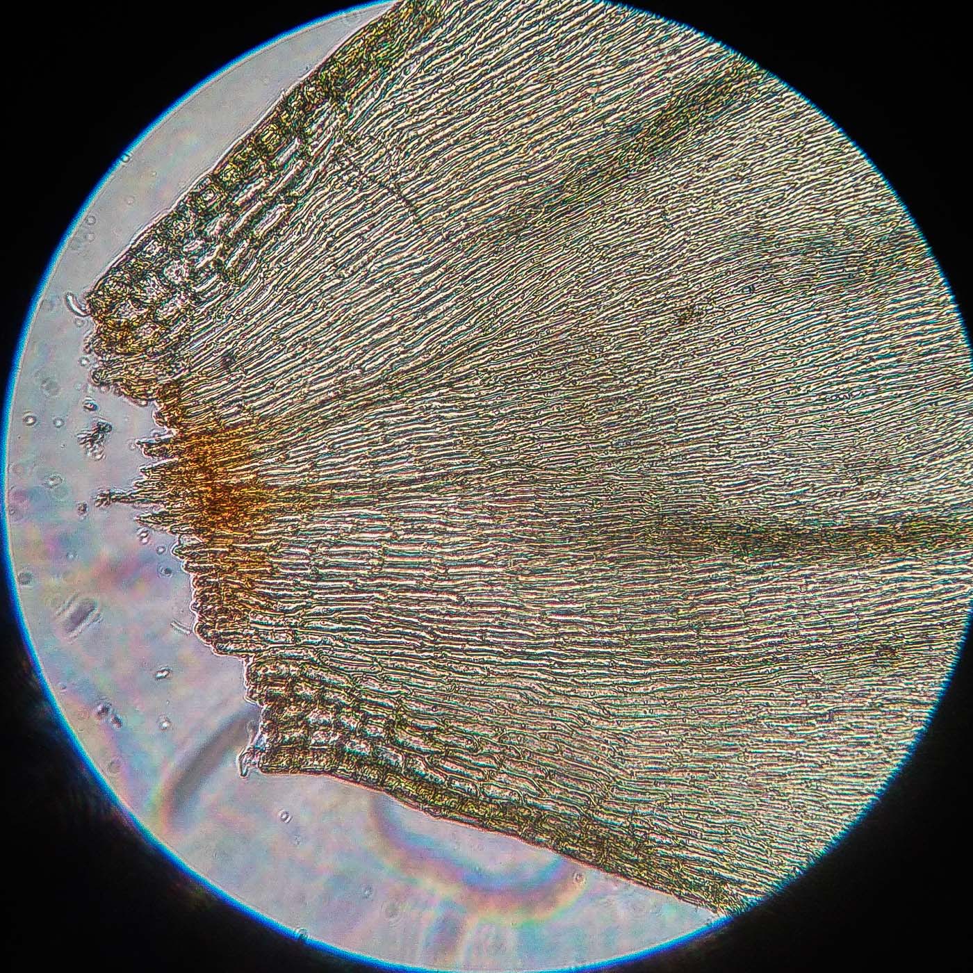| Александр Козловских | Да, уж. Спасибо, Денис. Внешне, конечно, он отличается от Pleurozium schreberi : выглядит более "богато" . Я засчитал это на более питательный субстрат и внешние условия произрастания. А по клеточной структуре отличия не явные: такие же тупые закруглённые верхушки, продольная складчатость листьев, отграниченная группа бурых клеток, высоко поднимающихся по краю от основания листа. Может и есть какие то отличия ... |