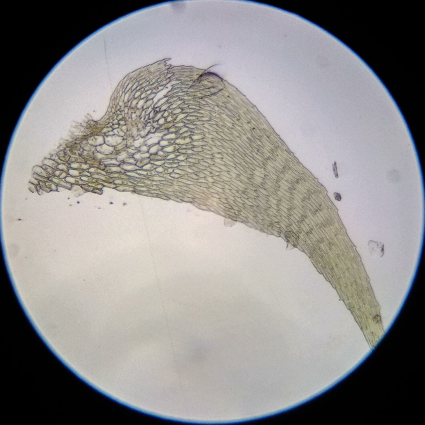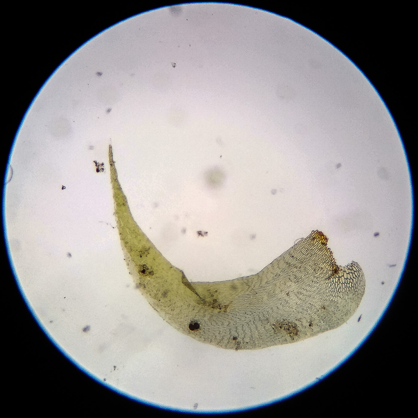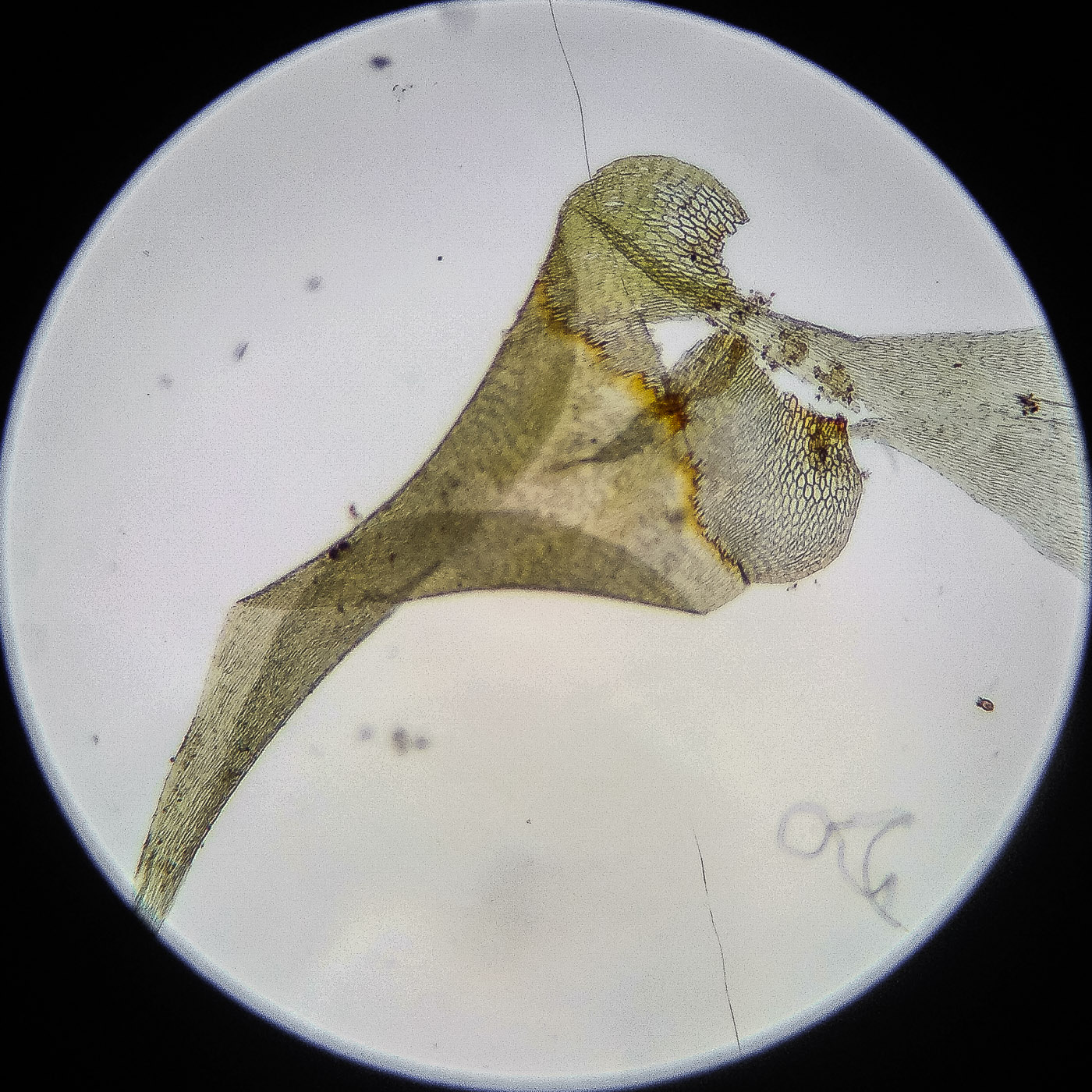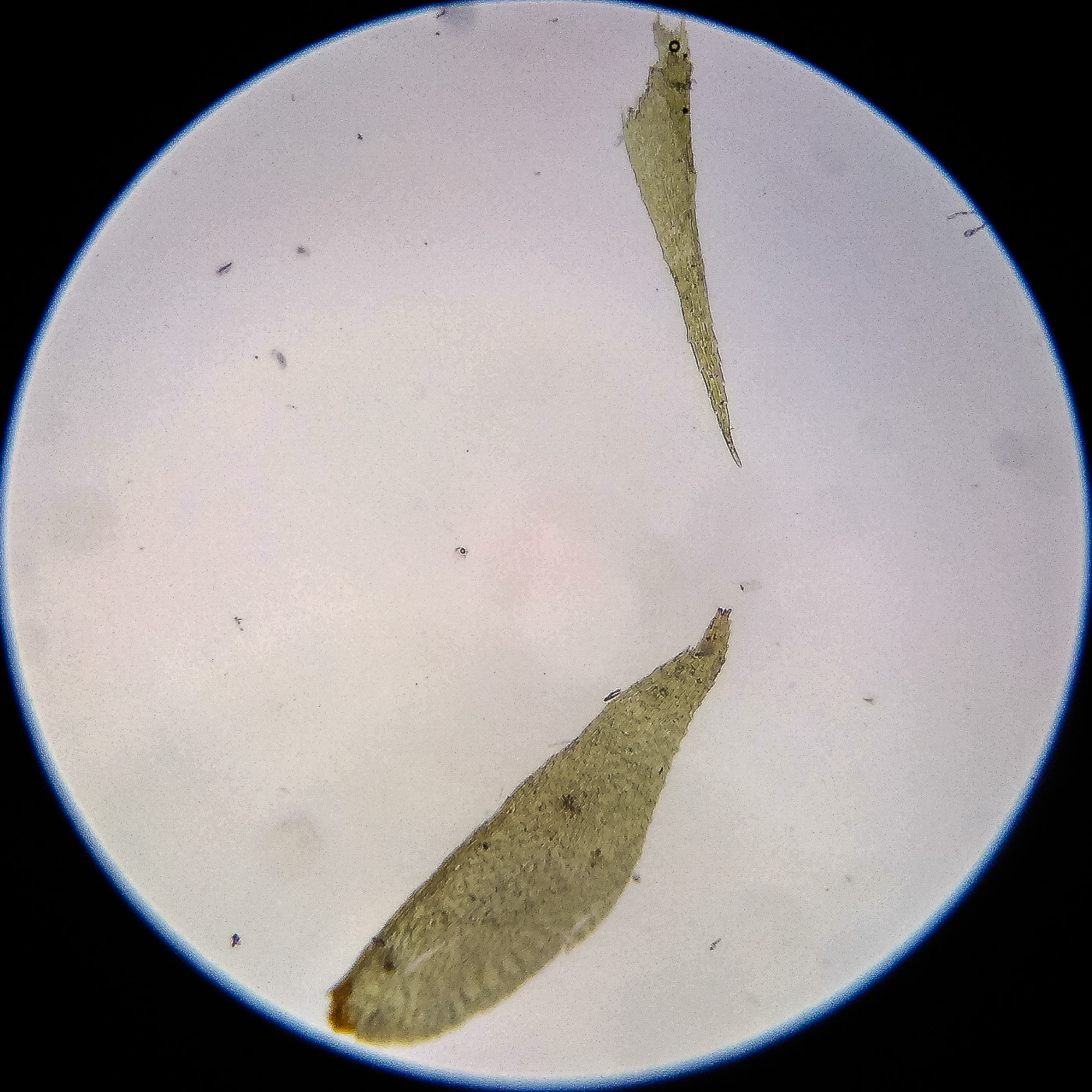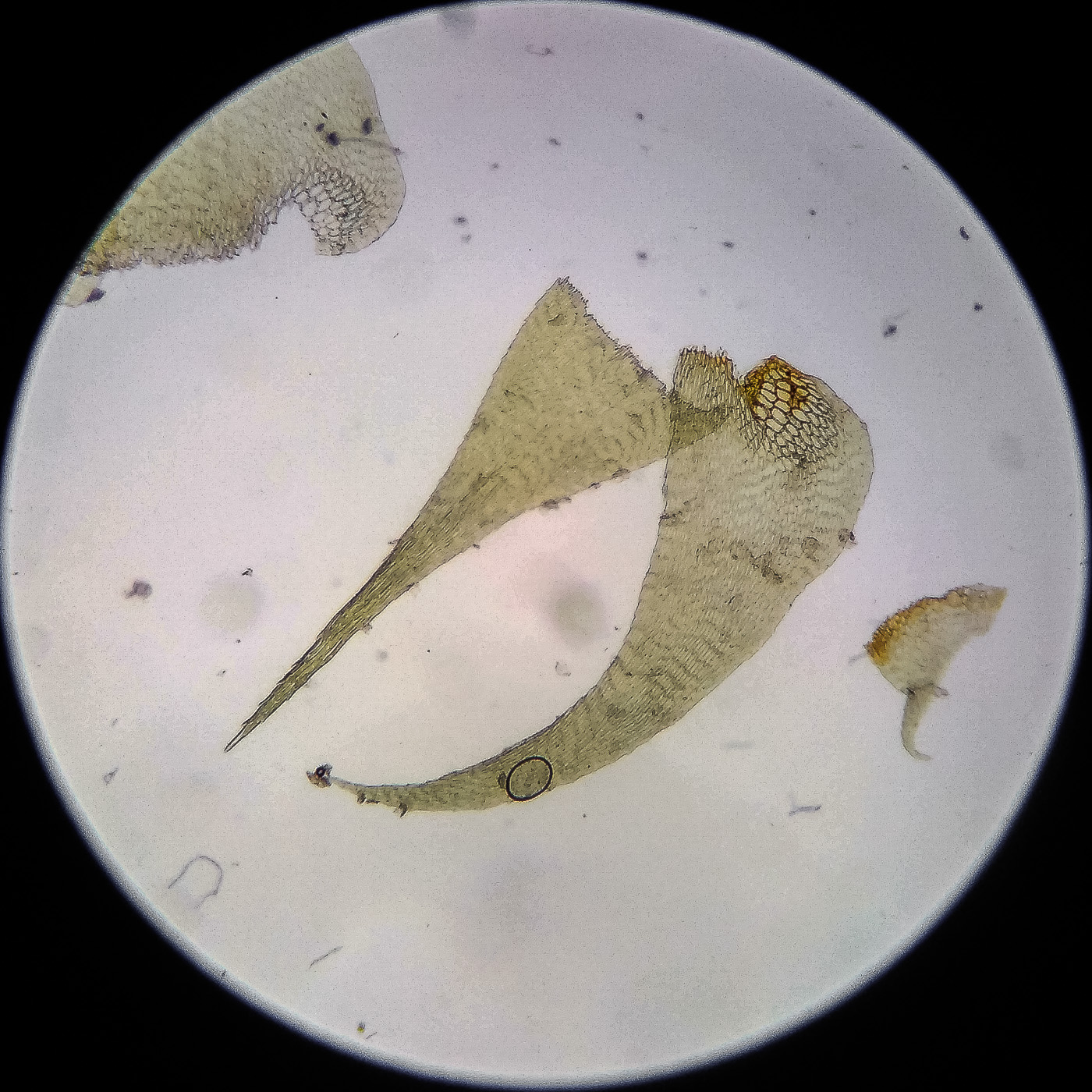 оказалась на свету, была жёлто-зелёной, а что под листвой — зелёной. Вид полностью соответствует описанию рода Rhytidiastrum Игнатовыми. А по широко яйцевидно-треугольным стеблевым листьям с оттопыренно отстоящей верхушкой суженной в ланцетно-шиловидную, желобчатую верхушку, остро пильчатому краю по всей длине — Rhytidiastrum subpinnatum.