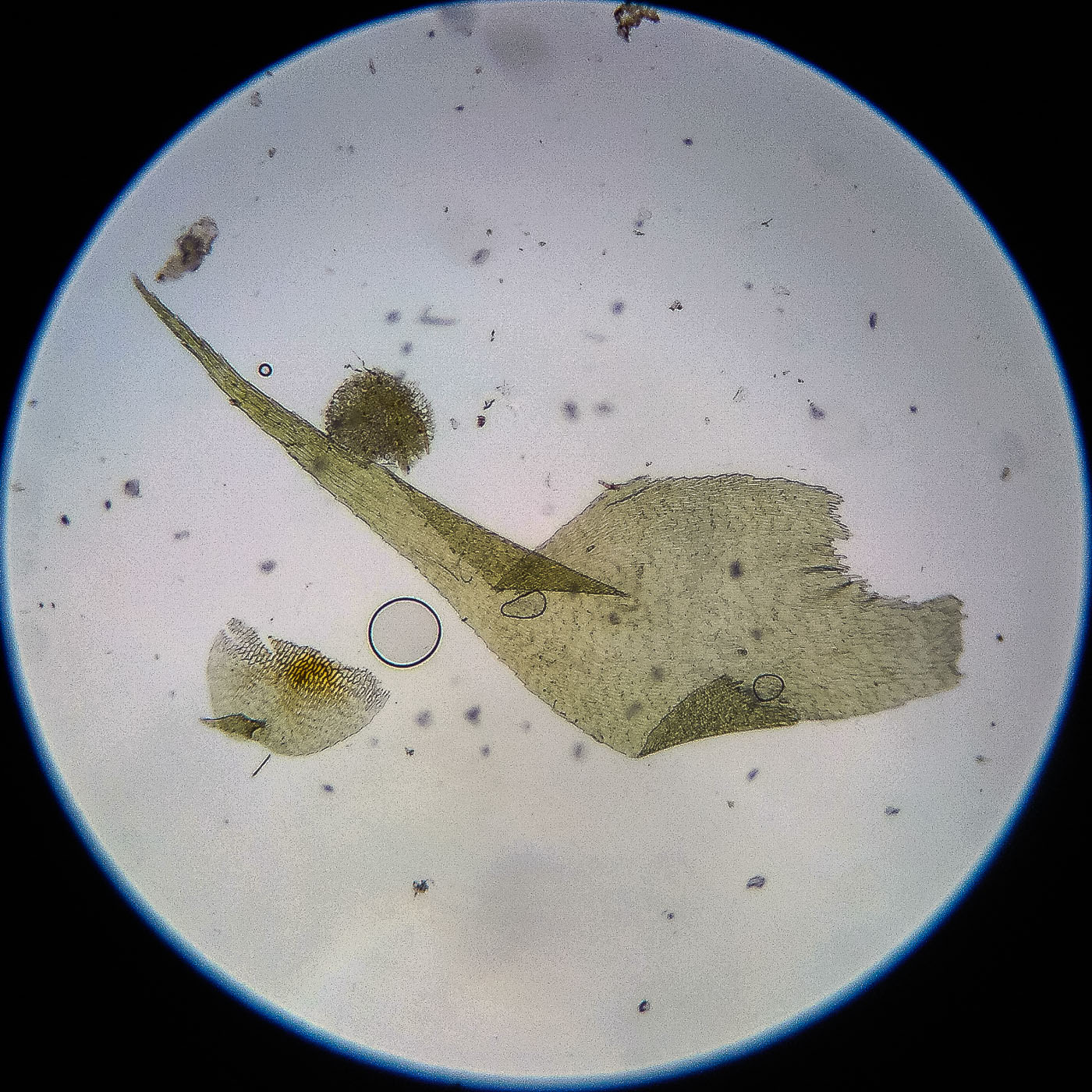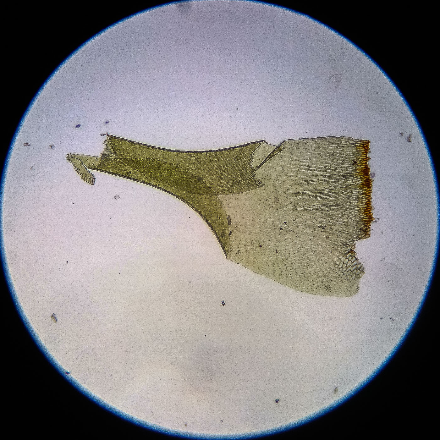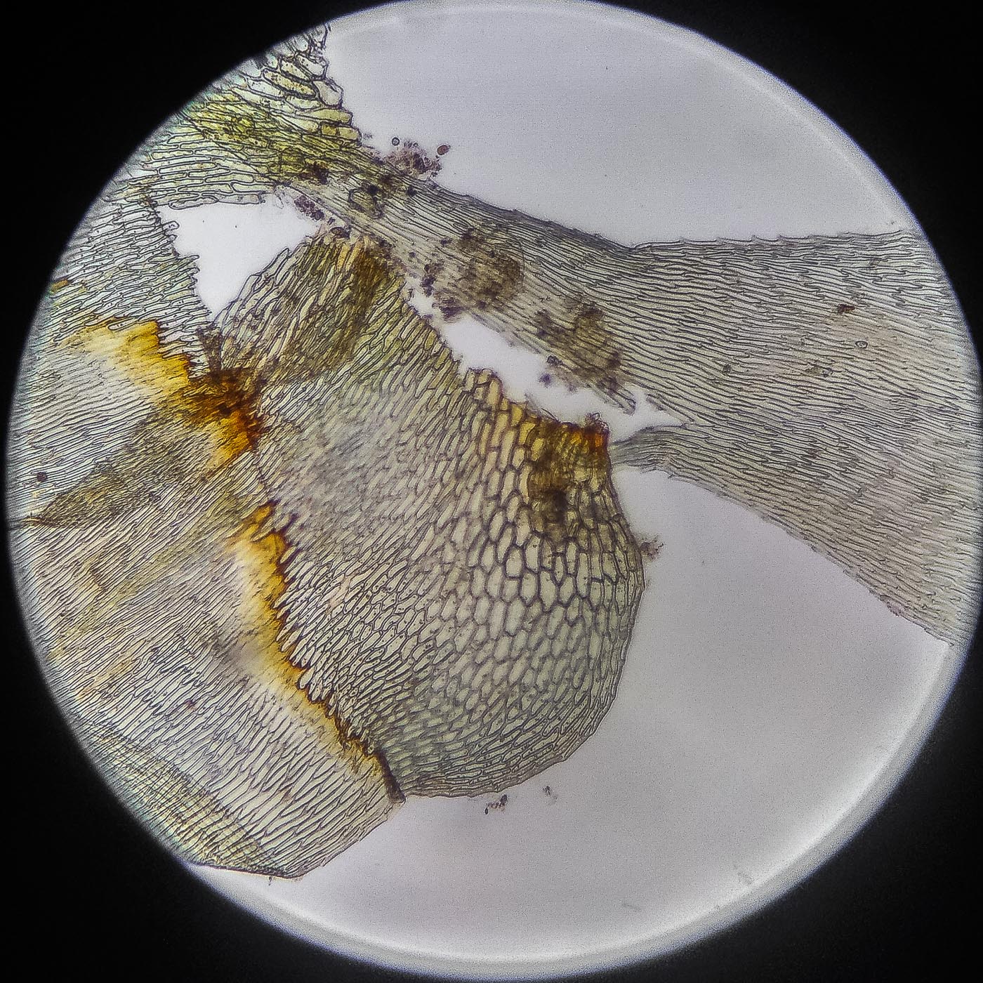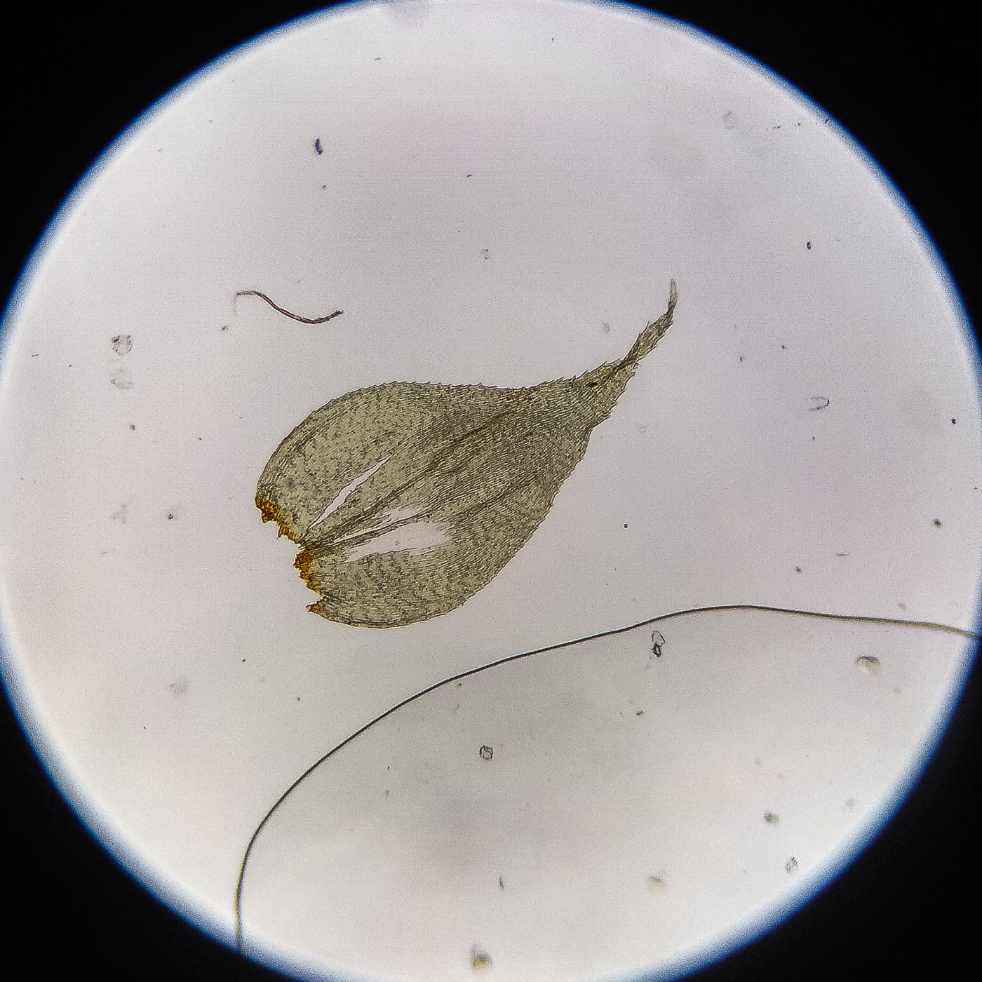 оказалась на свету, была жёлто-зелёной, а что под листвой — зелёной. Вид полностью соответствует описанию рода Rhytidiastrum Игнатовыми. А по широко яйцевидно-треугольным стеблевым листьям с оттопыренно отстоящей верхушкой суженной в ланцетно-шиловидную, желобчатую верхушку, остро пильчатому краю по всей длине — Rhytidiastrum subpinnatum.