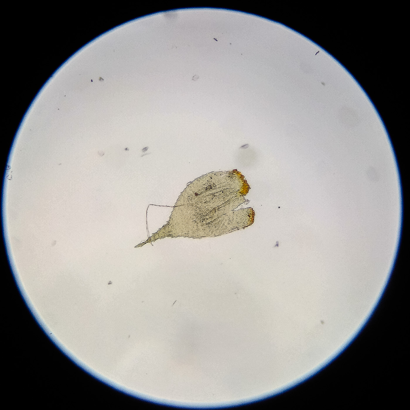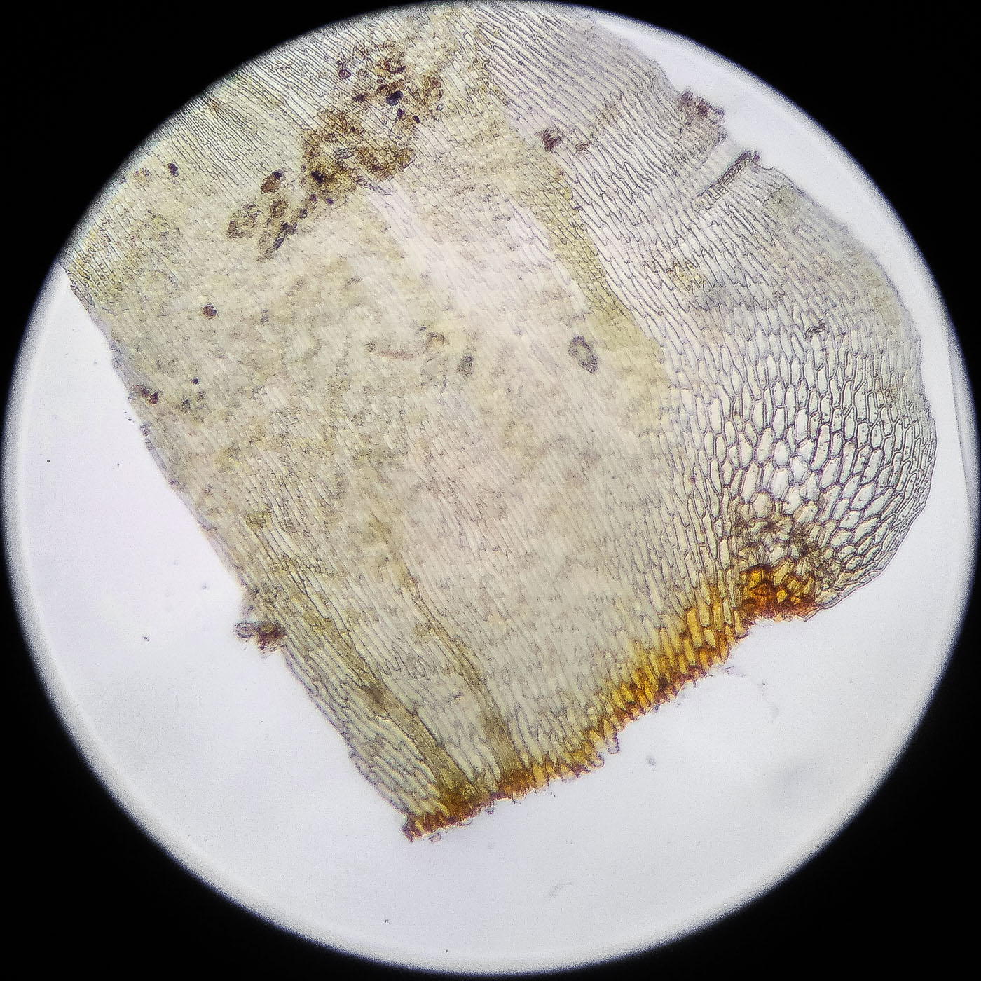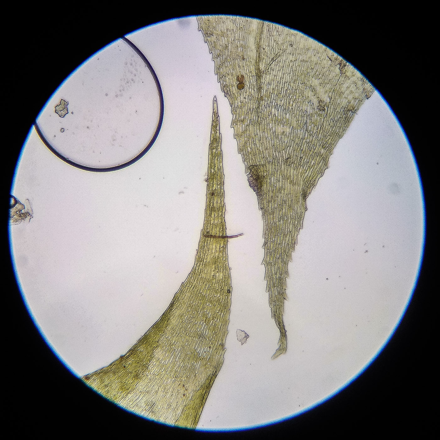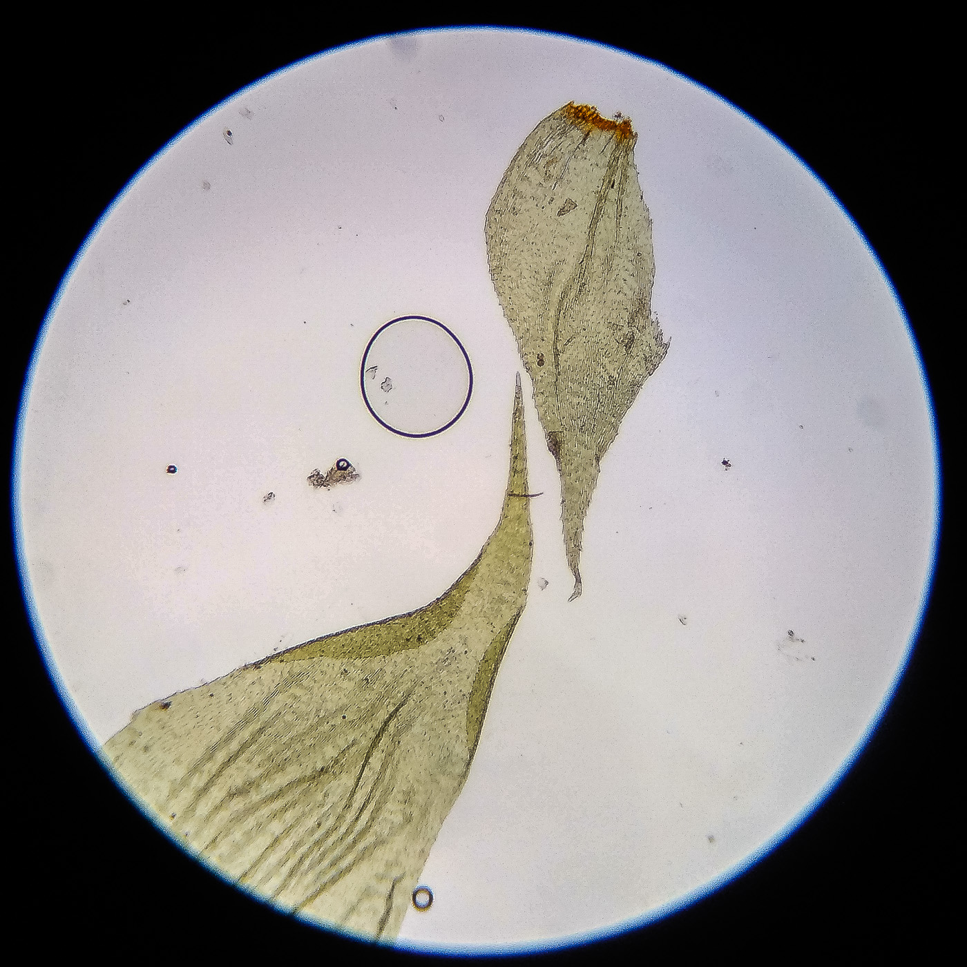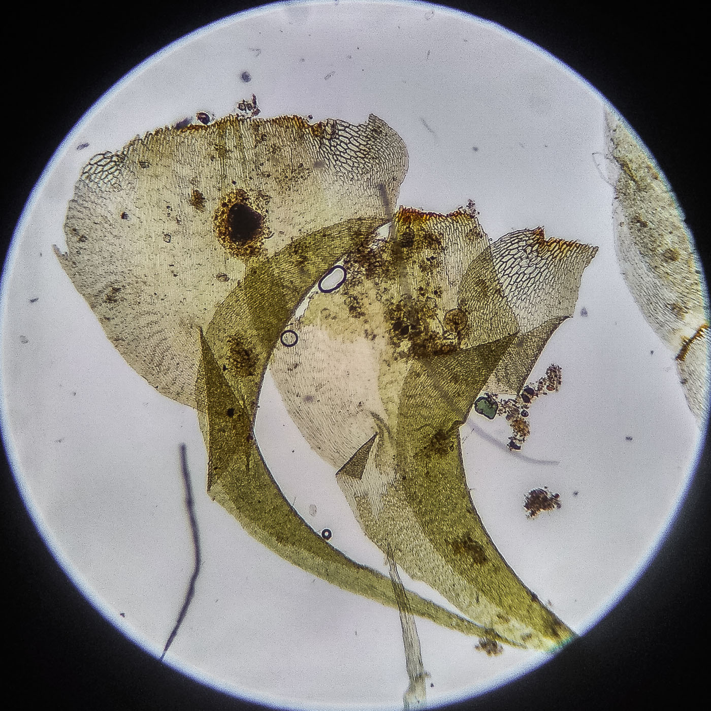 оказалась на свету, была жёлто-зелёной, а что под листвой — зелёной. Вид полностью соответствует описанию рода Rhytidiastrum Игнатовыми. А по широко яйцевидно-треугольным стеблевым листьям с оттопыренно отстоящей верхушкой суженной в ланцетно-шиловидную, желобчатую верхушку, остро пильчатому краю по всей длине — Rhytidiastrum subpinnatum.