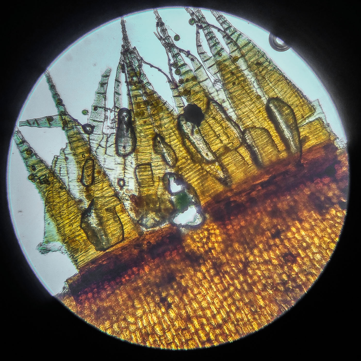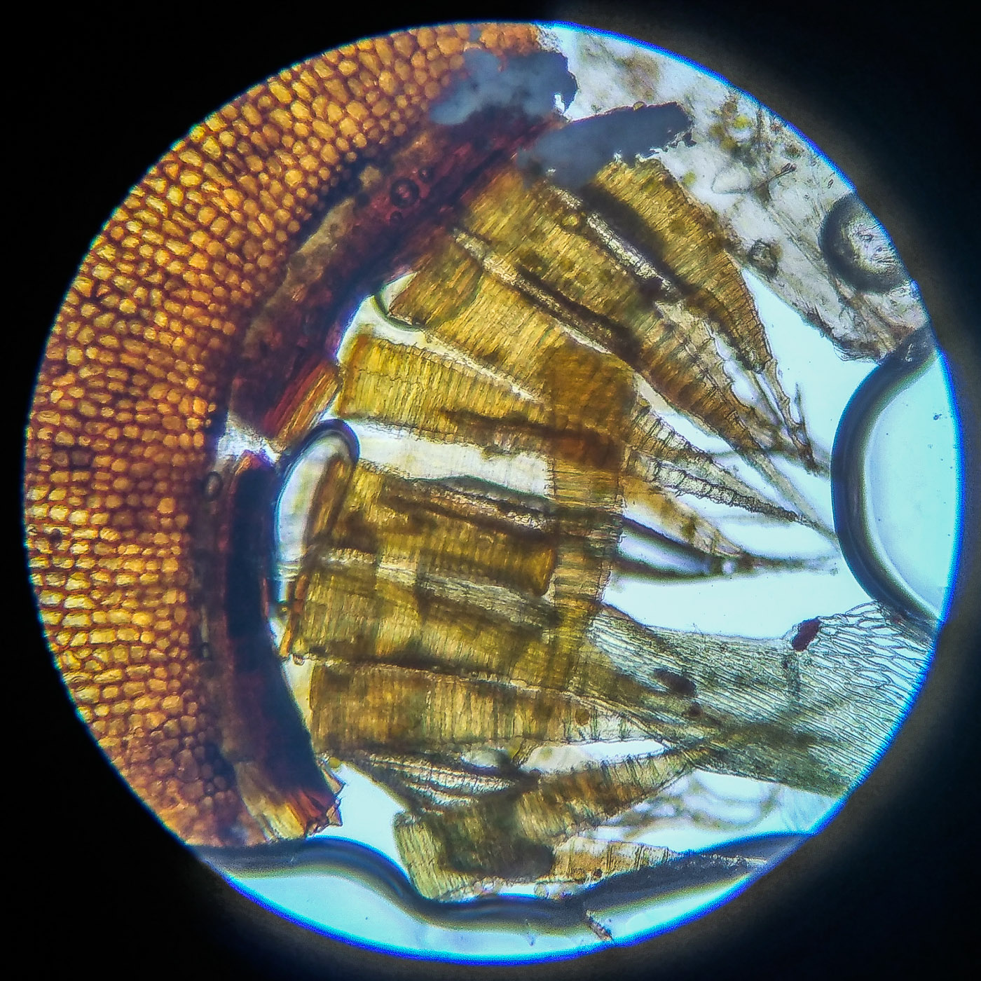 Дерновинка вегетирующих и спороносящих растений. Свердловская обл., окр. г. Заречный, Шеелитская горка после плотины, берёзовый лес, на камне покрытом слоем гумуса. 25.04.2025.
