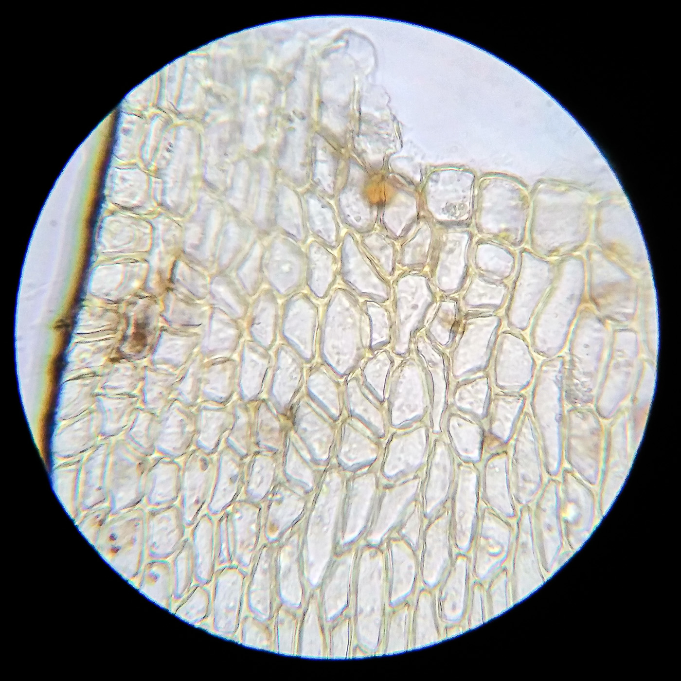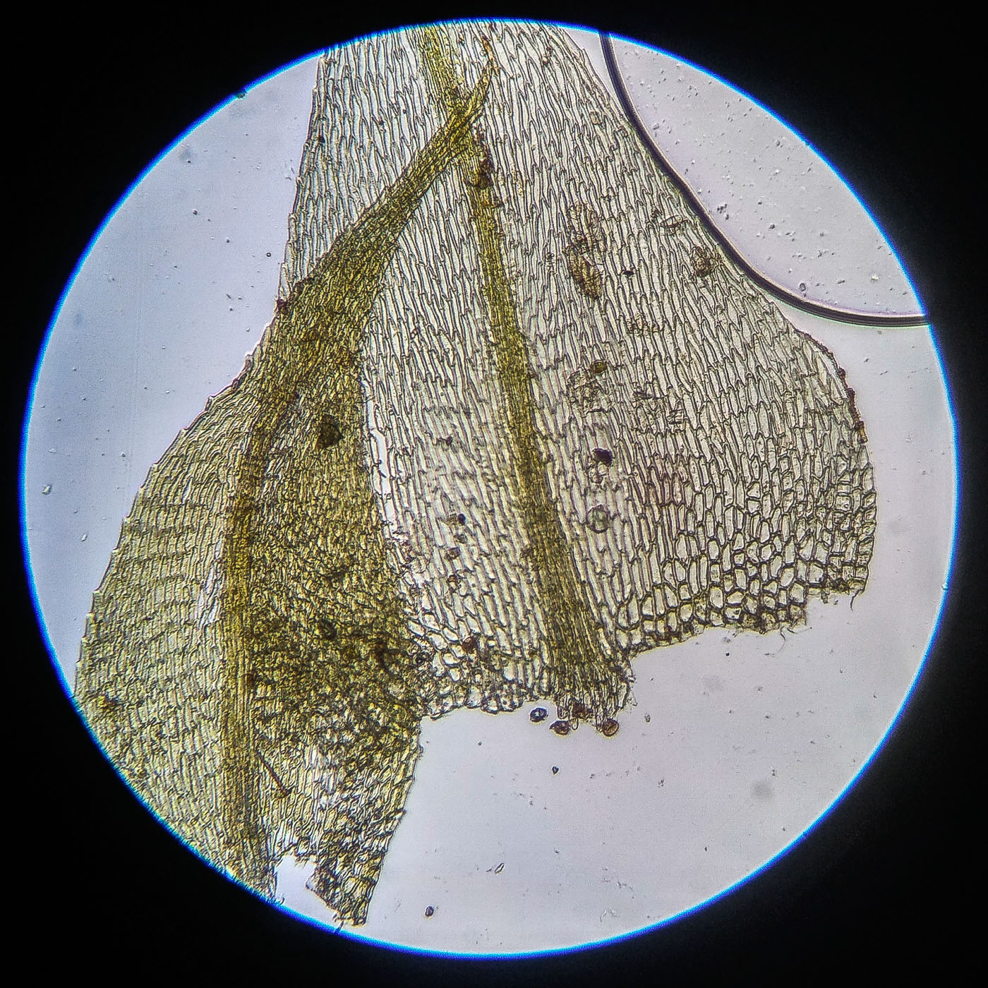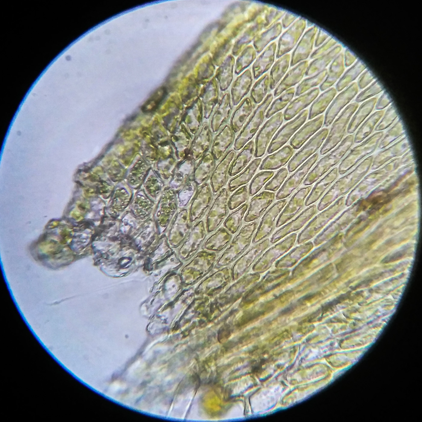 * клетки середины листа 25-40х6-9µm, у основания более широкие, квадратные и коротко прямоугольные, умеренно толстостенные;