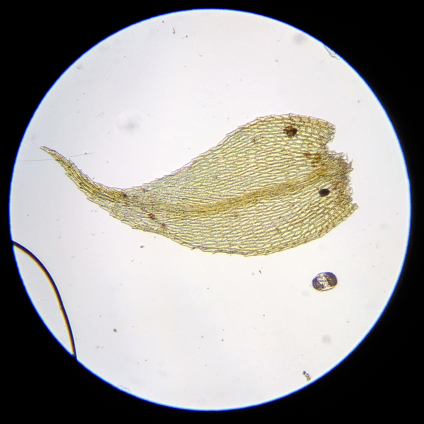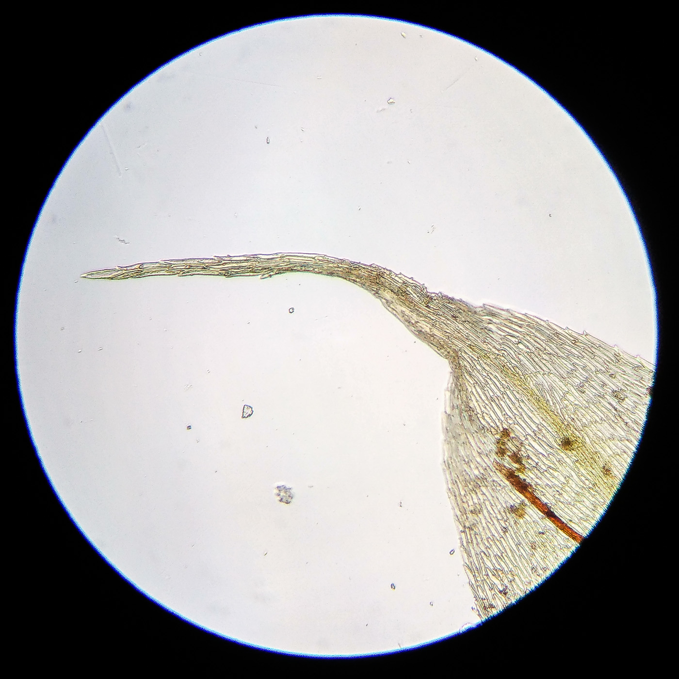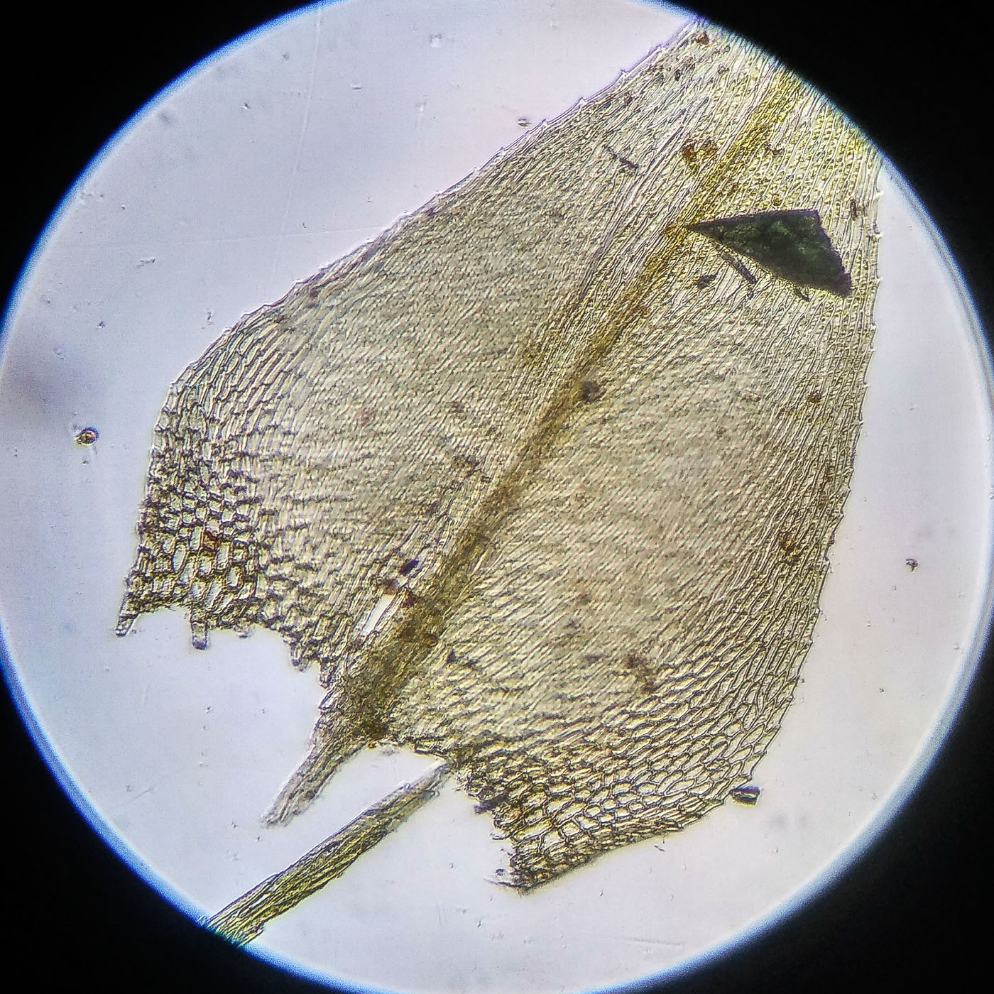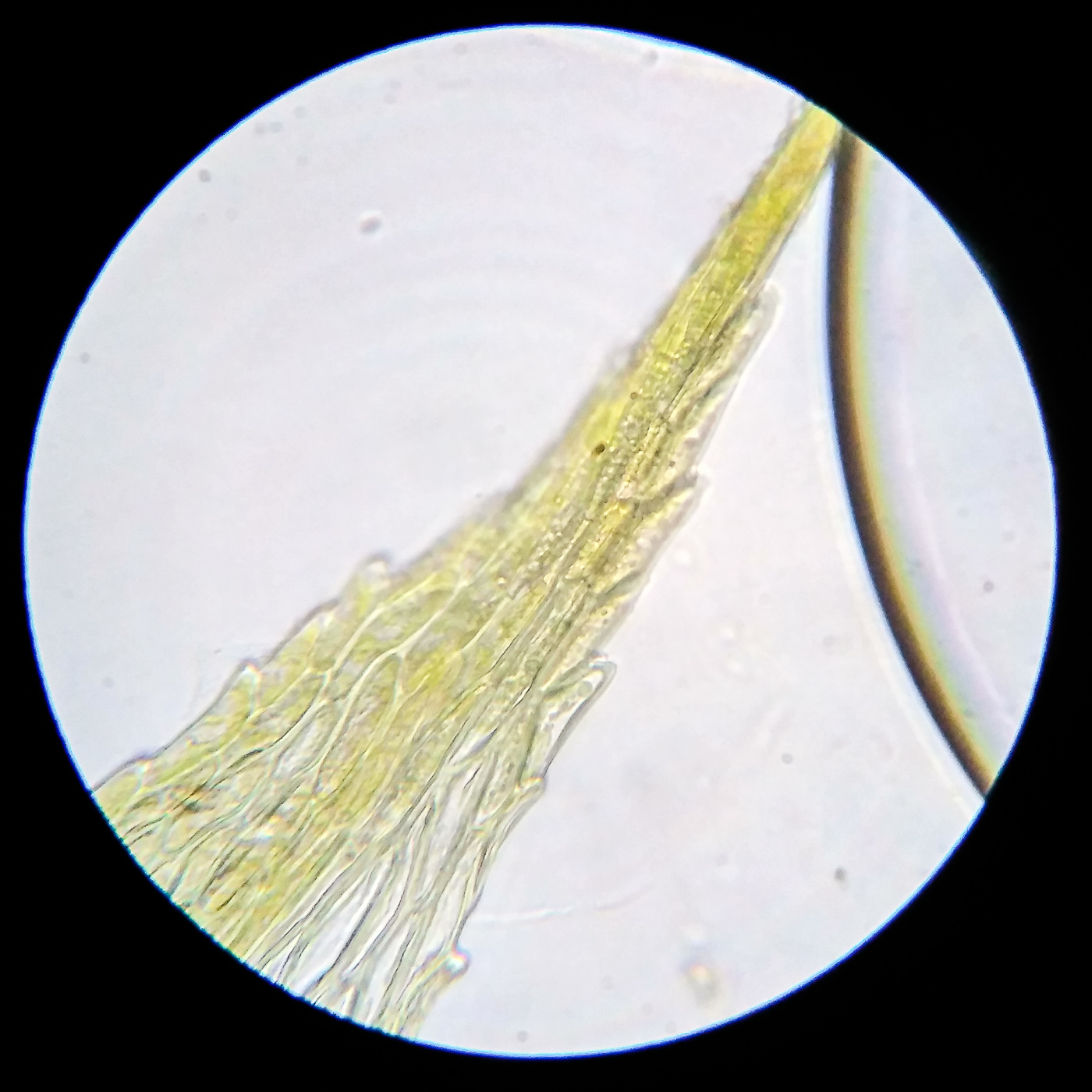 * клетки середины листа 25-40х6-9µm, у основания более широкие, квадратные и коротко прямоугольные, умеренно толстостенные;