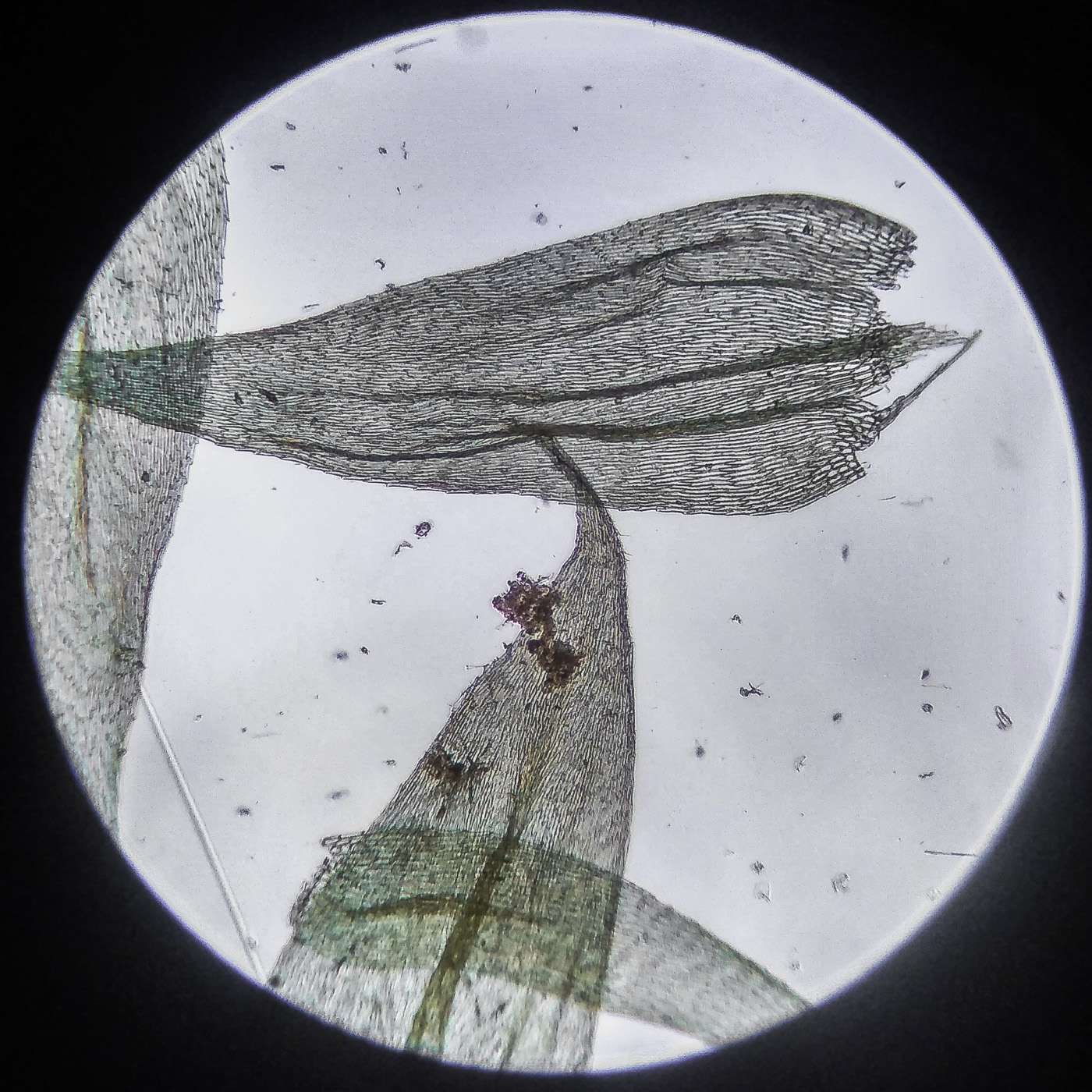 Клетки в середине листа линейные, в углах основания квадратные и коротко прямоугольные, образующие небольшую квадратную группу, умеренно четко отграниченную от соседних клеток.