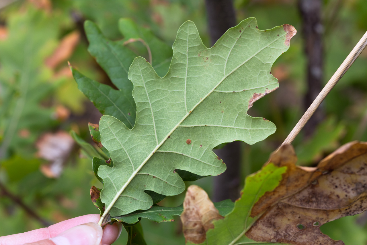 Листья, принимающие осеннюю окраску. Ставропольский край, г. Пятигорск, склон горы Машук, Перкальские скалы, широколиственный лес. 27.09.2025.