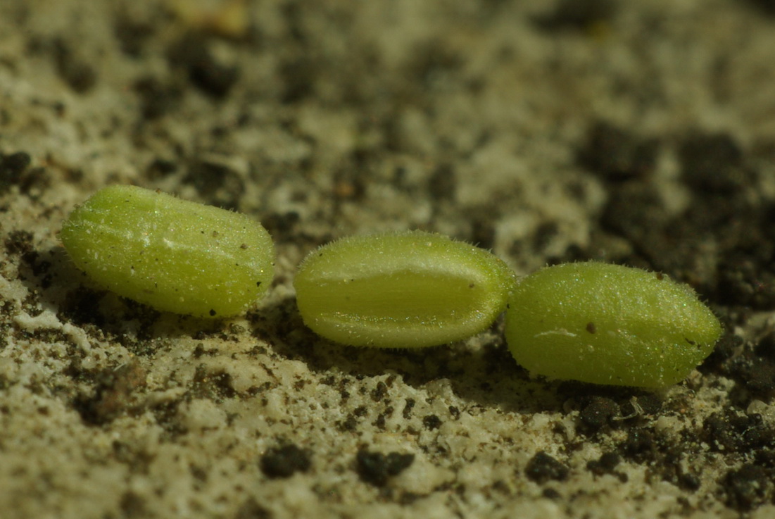 У Valerianella turgida семя почти круглое, около 2мм, присутствует опушение. Очень глубокая продольная выемка с одной стороны почти делит семя пополам.