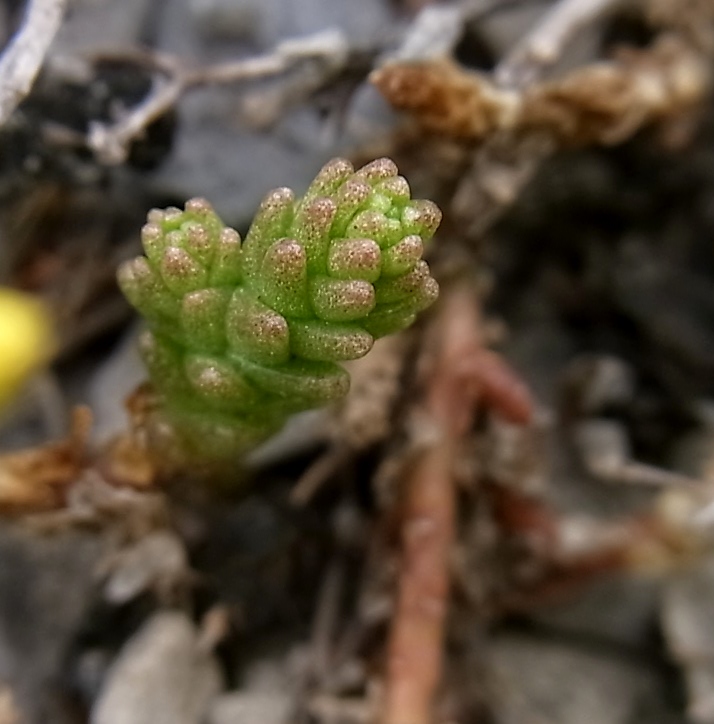 Этот конкретный очиток я видела в феврале. Когда он ещё не цвёл, естественно. То ли зимовал, то ли в прошлом году посеялся и ждал возможности расцвести...