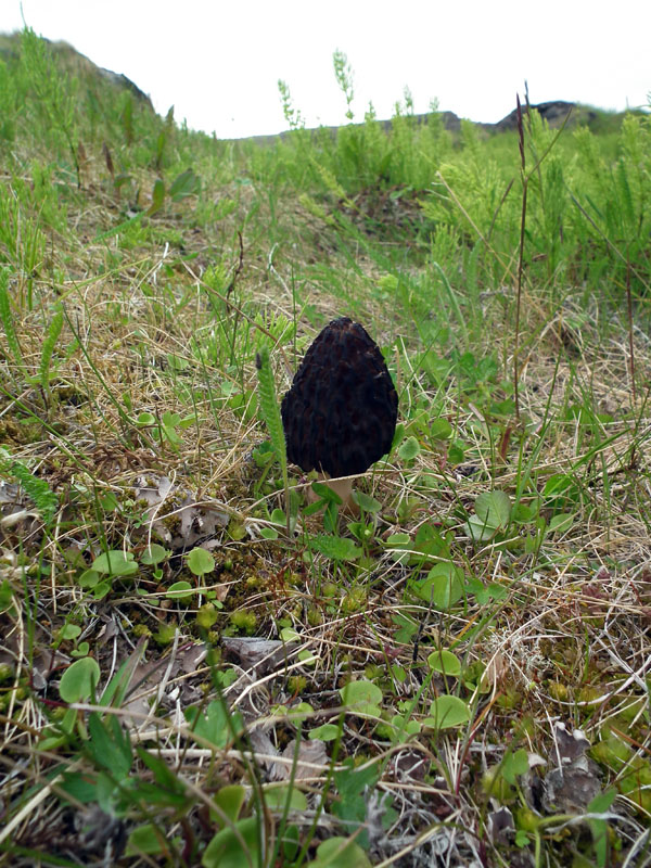 Совершенно сухое. Пласт сухого дёрна на песчаной и скальной поверхности возле дома. Там всё в куче - сетчатая ива, брусничная куртина (забыл ведь ее фото на Плантариума закинуть, щас сделаю), сморчки конические. Сегодня у меня грибной день в ДЗ. |