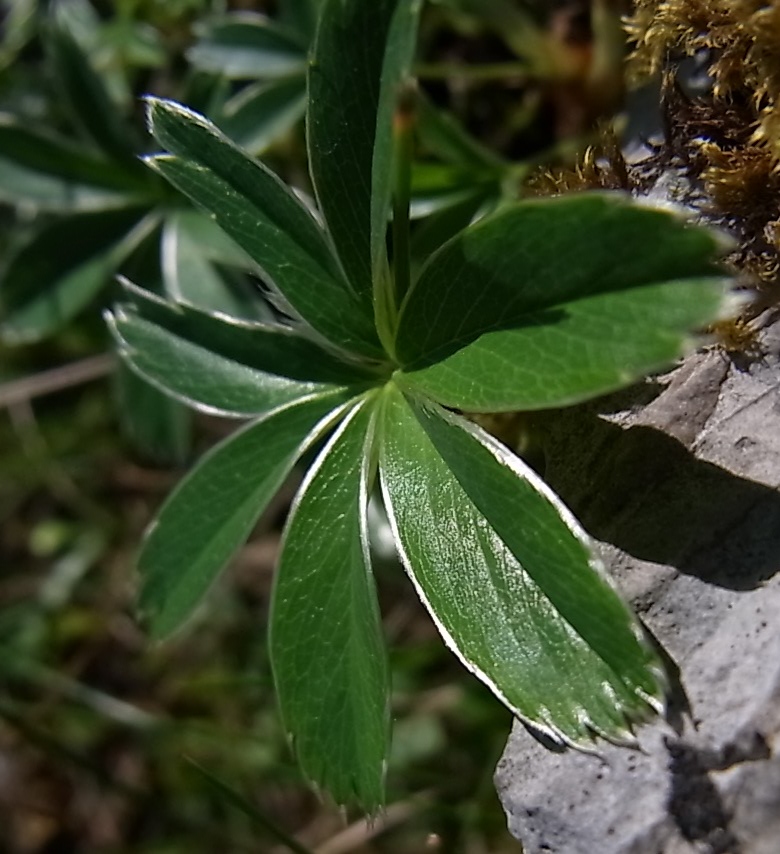 | Андрей Ковальчук | Ну, секция всё-таки Alpinae, а вот что касается вида... Я по ключу из Flora Iberica выхожу на A. catalaunica - у A. alpigena лопасти листьев должны быть поуже, а зубчики на их верхушке чуть покороче. |