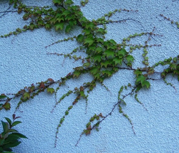 Стена дома, покрытая Parthenocissus tricuspidata. Крым, пос. Отрадное, территория пансионата «Прибрежный». 22.05.2013. [конец весны — начало лета]