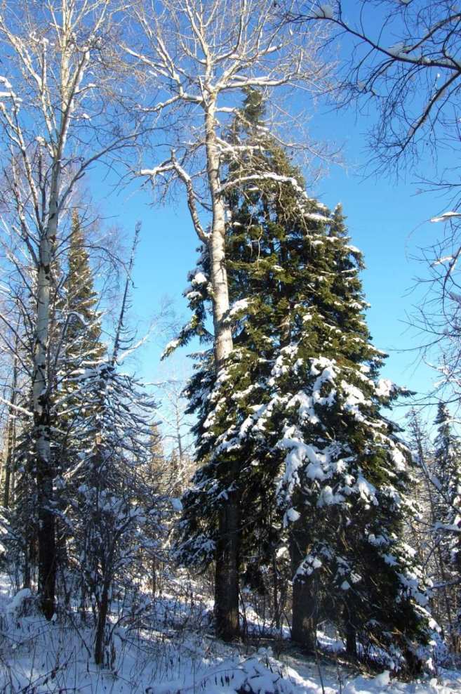 Черневая тайга зимой. Пихта под кроной осины. Кемеровская область, окрестности пос. Камешек. 10.11.2013. [поздняя осень — начало зимы]