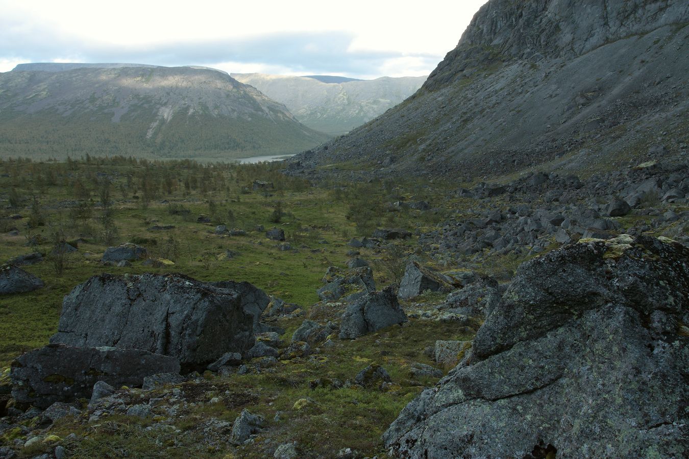 Олуговелая лесотундра на днище Южного цирка. 12.08.2010. [лето]