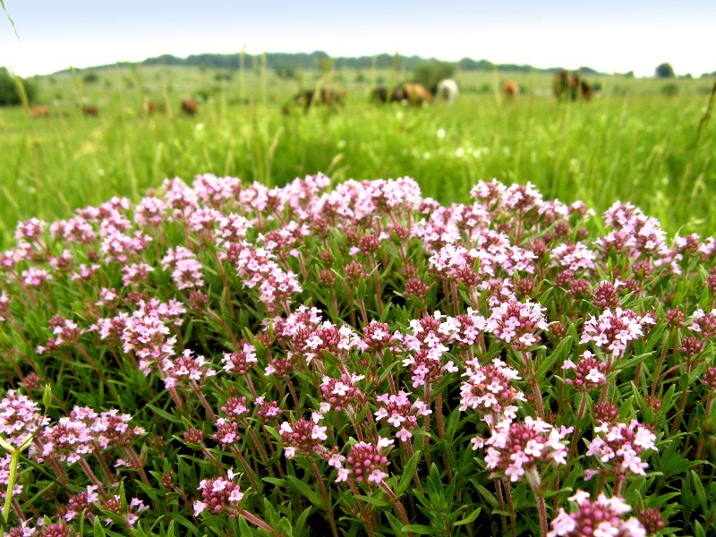 Плоскогорье богато травянистой растительностью. Наибольшее распространение здесь получили чабрецово-типчаковые сообщества, особенно в восточной части. По северным отрогам яйлы и центральной ее части преобладают дубравниково-типчаковые сообщества, а по днищам карстовых воронок и по их пологим склонам — злаково-подмаренниковые. Видно обильное цветение лабазника обыкновенного. 26 июня 2011 г. [лето]