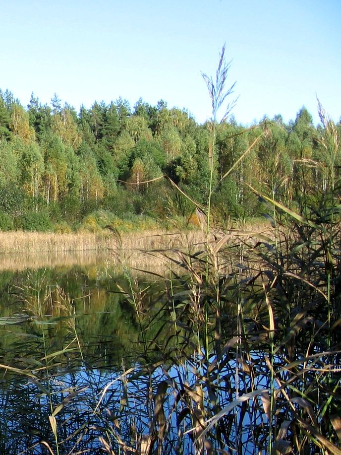 к другому фото в порядке загрузкик другому фото в точкек другому фото автораРазнообразно пожелтевшие лиственные деревья на фоне вечнозелёных хвойных у лесного озера. Phragmites australis на переднем плане. 23.09.2006. [осень]