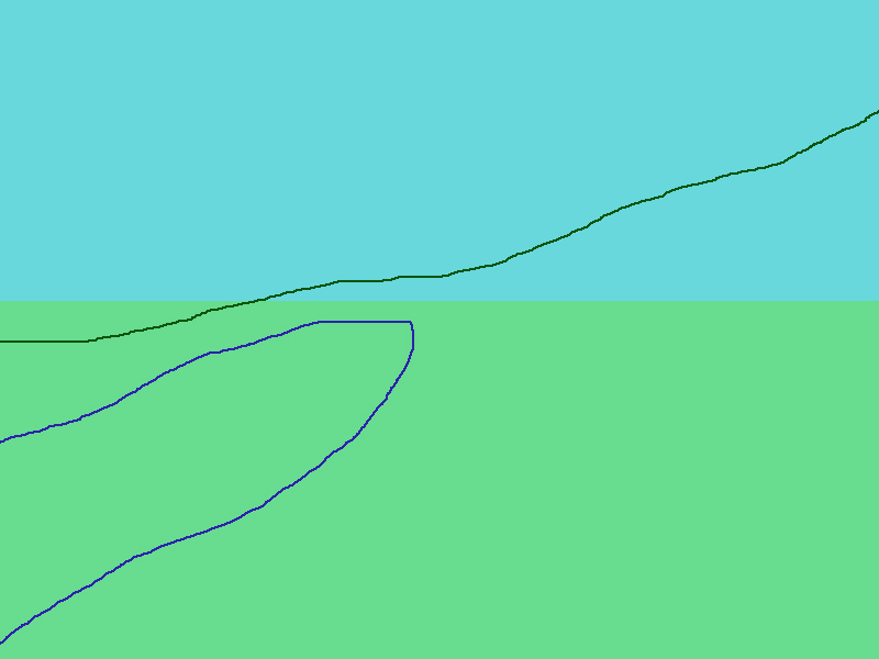 Использовать береговую линию можно тогда, когда ее искривления можно считать незначительными относительно расстояния до неё, только ее направленность и угол наклона могут быть разными, но тут уж воля автора, как он это ощущает, а вовсе не то, как было на самом деле.Использовать береговую линию можно только в том случае, когда взгляд камеры перпендикулярен ей |