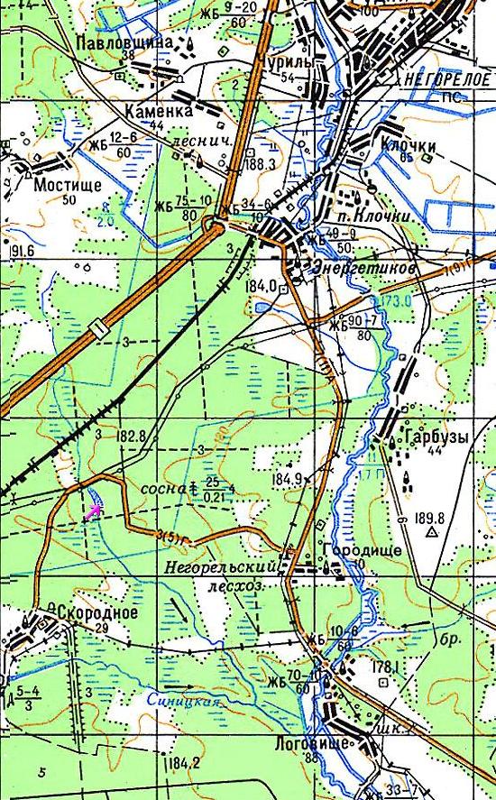Станислав, самые лучшие карты, что смогла найти - Асино не показывают, но справа сверху видна предыдущая "Энергетиков".Хотя бы показывают озеро без названия, фото которого и представлены (обозначила розовой стрелкой) , приток Синицкой традиционно не подписан (на фото я была на берегу чуть выше чёрной стрелочки на карте, но стороны Негорельского лесхоза). Или Вы получше карту видели?