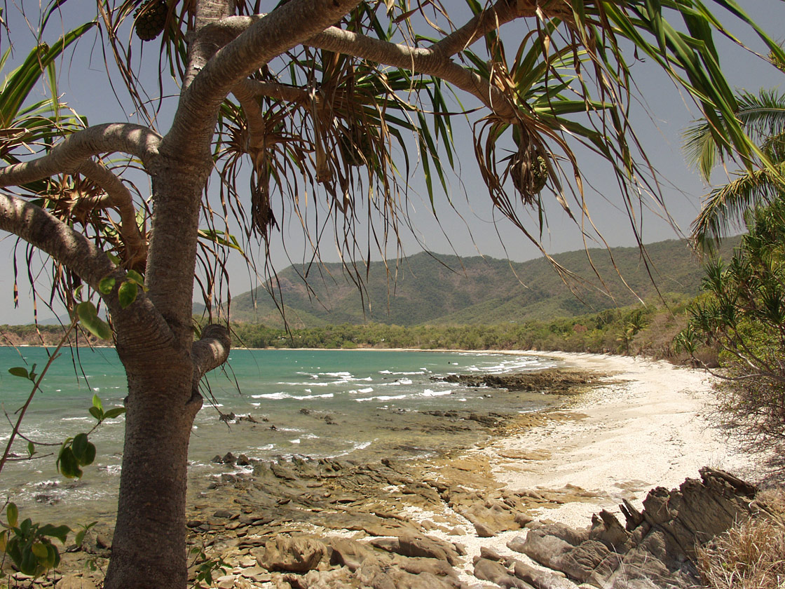 Pandanus tectorius на берегу Кораллового моря возле трассы Captain Cook Hwy между городами Порт Дуглас и Кэрнс. Конец сухого сезона (сезон gurreng). 05.10.2009.