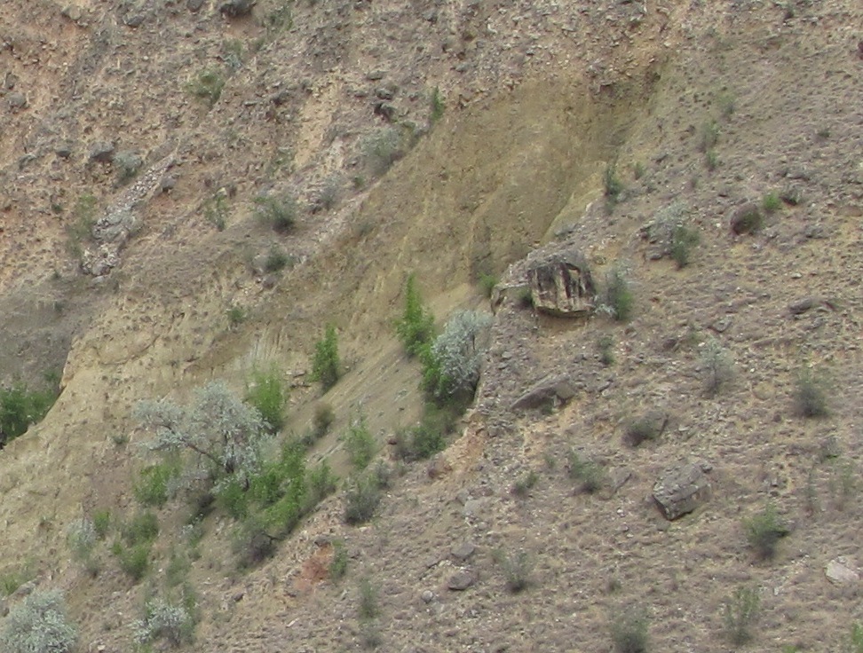 Крутой склон. Из деревьев и кустарников здесь особенно обычны Elaeagnus caspica, Paliurus spina-christi, Berberis iberica. 11.05.2018. [лето]