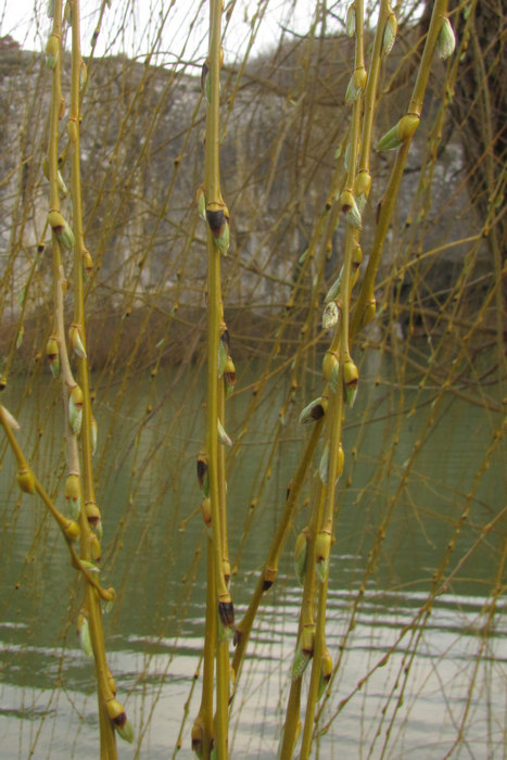 А это и не цветы, а просто молодые побеги, они у ивы белой (и родственных ей) как раз жёлтые.Ива не цветет ещё |