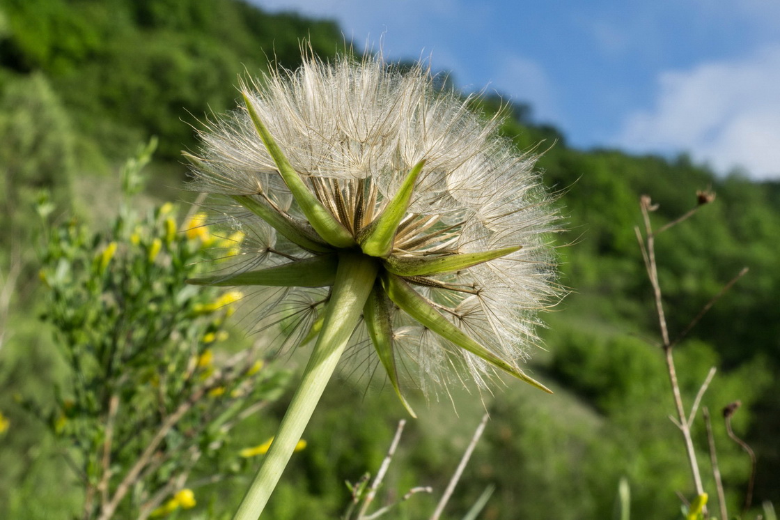 Пологий склон небольшой долины, можжевеловое редколесье с большим разнообразием травянистой ксерофитной растительности, цветущими ятрышниками Orchis mascula и Orchis simia, козлобородником Tragopogon sp., незабудкой Myosotis arvensis. ~1,5 км от берега моря. 28.04.2019. [весна]