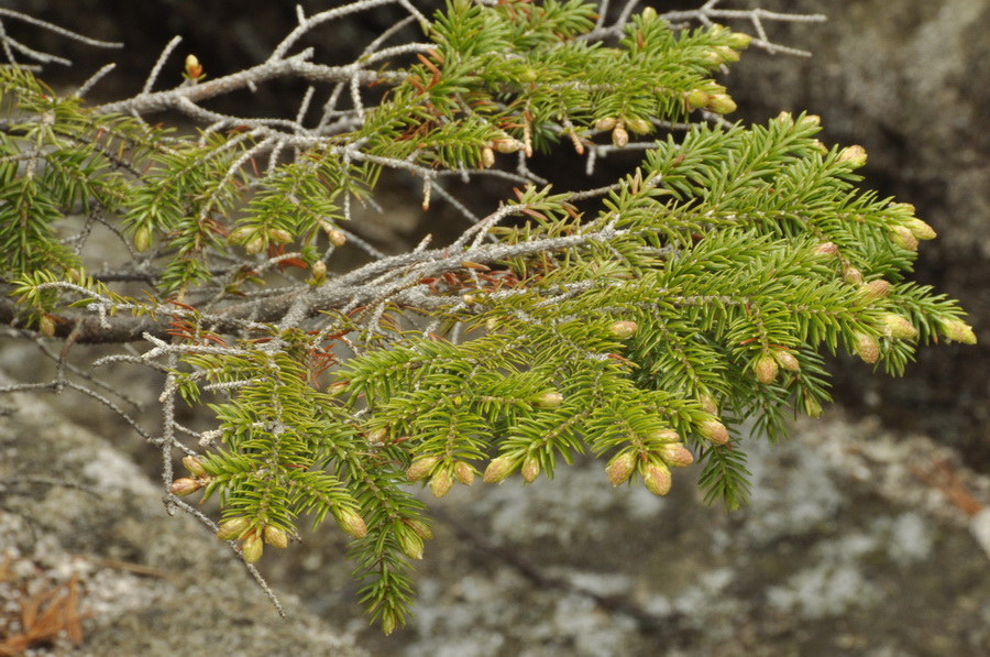 Скальный останец, из трещины которого растёт Picea ajanensis. 17.05.2020. [весна]