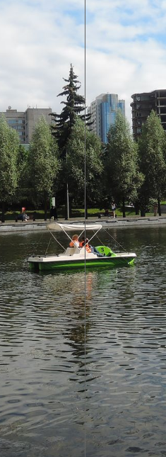 Пионерский пруд. За деревьями видны корпуса технического университета "МИСиС". 29.08.2020. [лето]