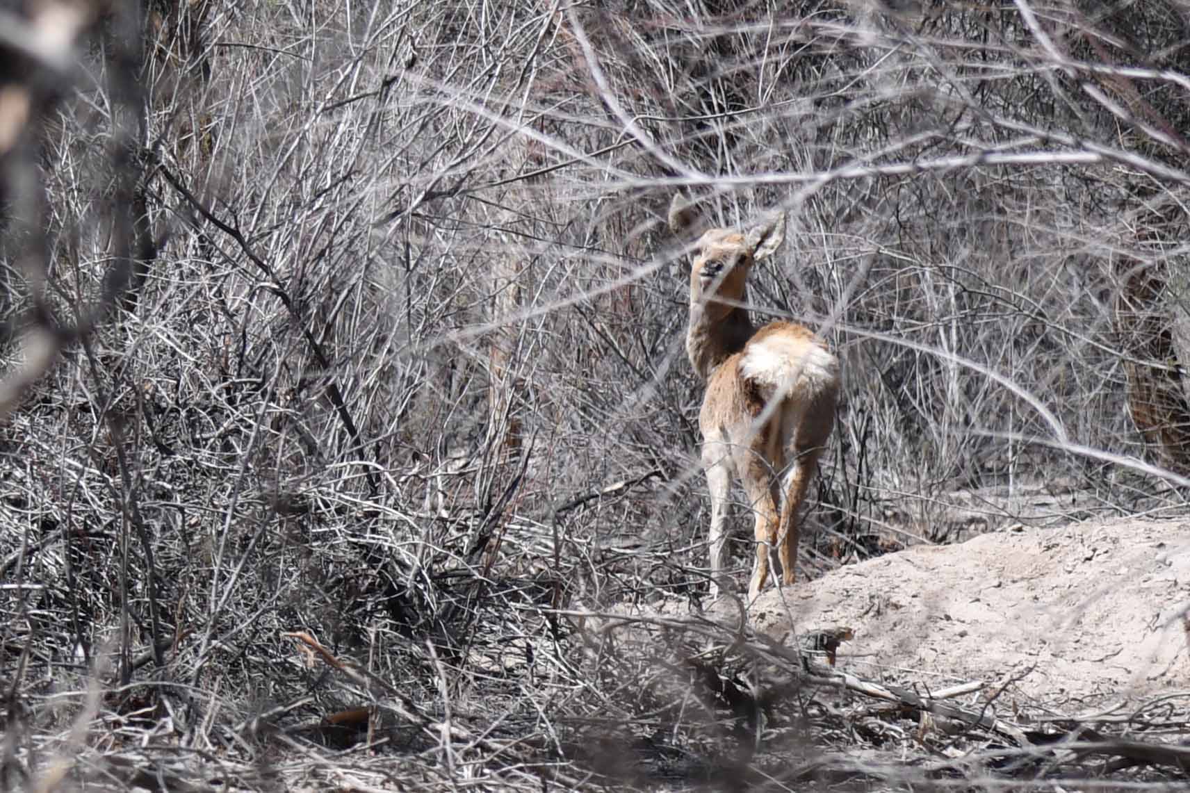 Вроде бы олень - но вот же собака какая...бухарский олень, который сильно размножился на этой очень ограниченной территории и выедает всю молодую поросль туранги |