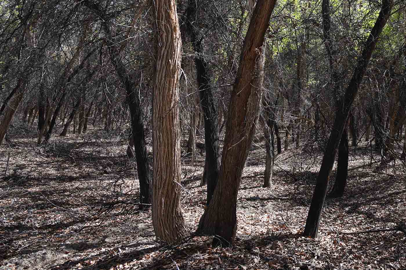 | Илья Оголь | Я ничего не смыслю в тугаях, но по краскам на фото сдается мне, что в текущем году там был низовой пожар. Отсюда и отсутствие нижних ярусов растительности. |