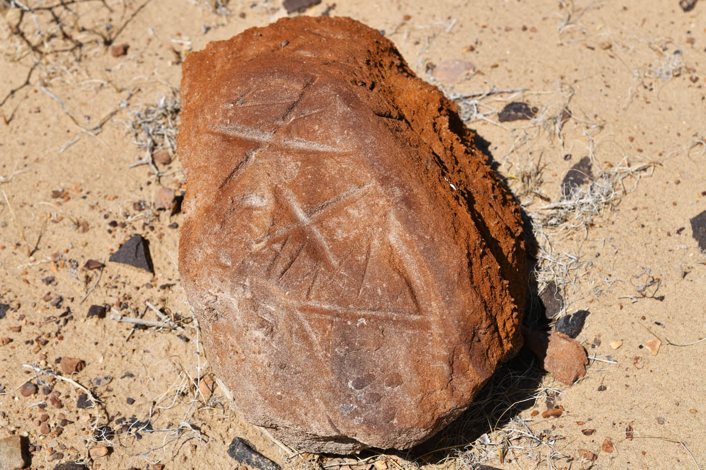 Песчано-каменистый склон с дахмой на вершине; видны редкие кустики полыни и солянок еще не начавших вегетацию. 11 апреля 2023 г. [весна]
