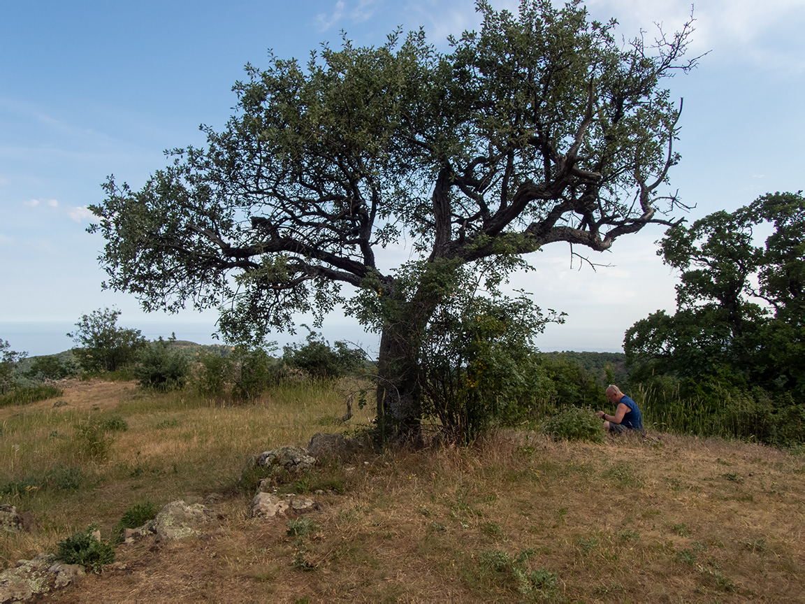 Старое дерево Pyrus elaeagrifolia на поляне. Смотровая площадка на горном плато в 200 м к западу от р. Алака (Сотера). 30.05.2024. [конец весны — начало лета]