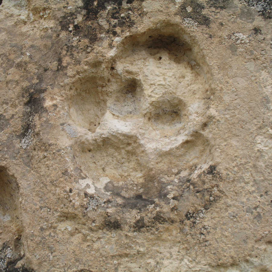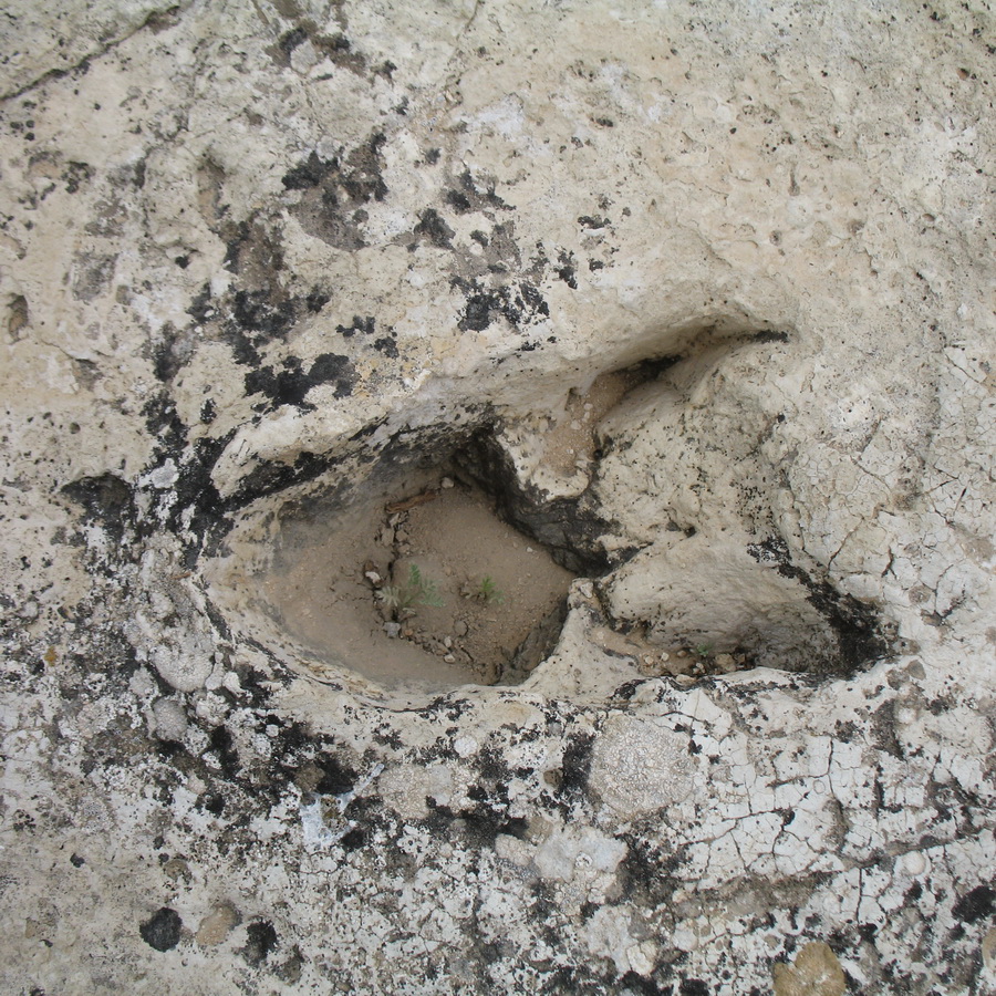 Перевёрнутый скальный блок в провале Жигалган с окаменевшими следами различных видов животных гиппарионовой фауны. 13 мая 2024 г. [конец весны — начало лета]