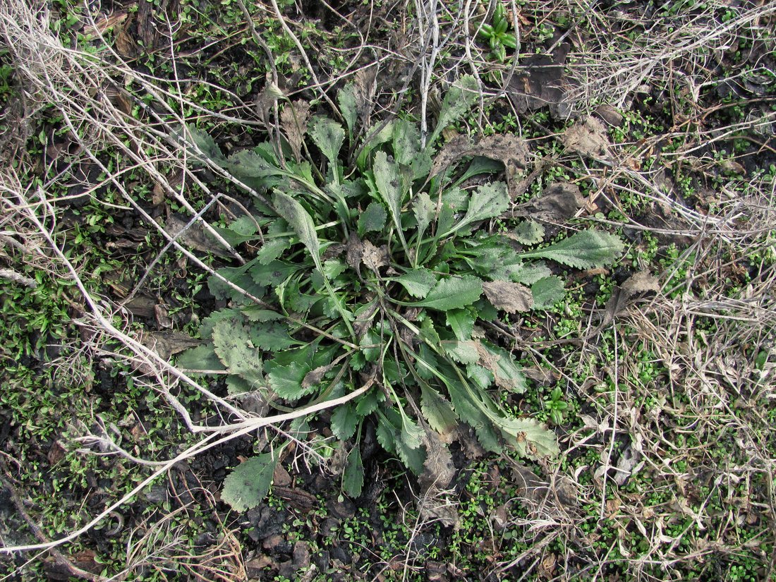 Растение с перезимовавшими листьями. Окр. Архангельска, свалка древесных отходов. 16.04.2011.