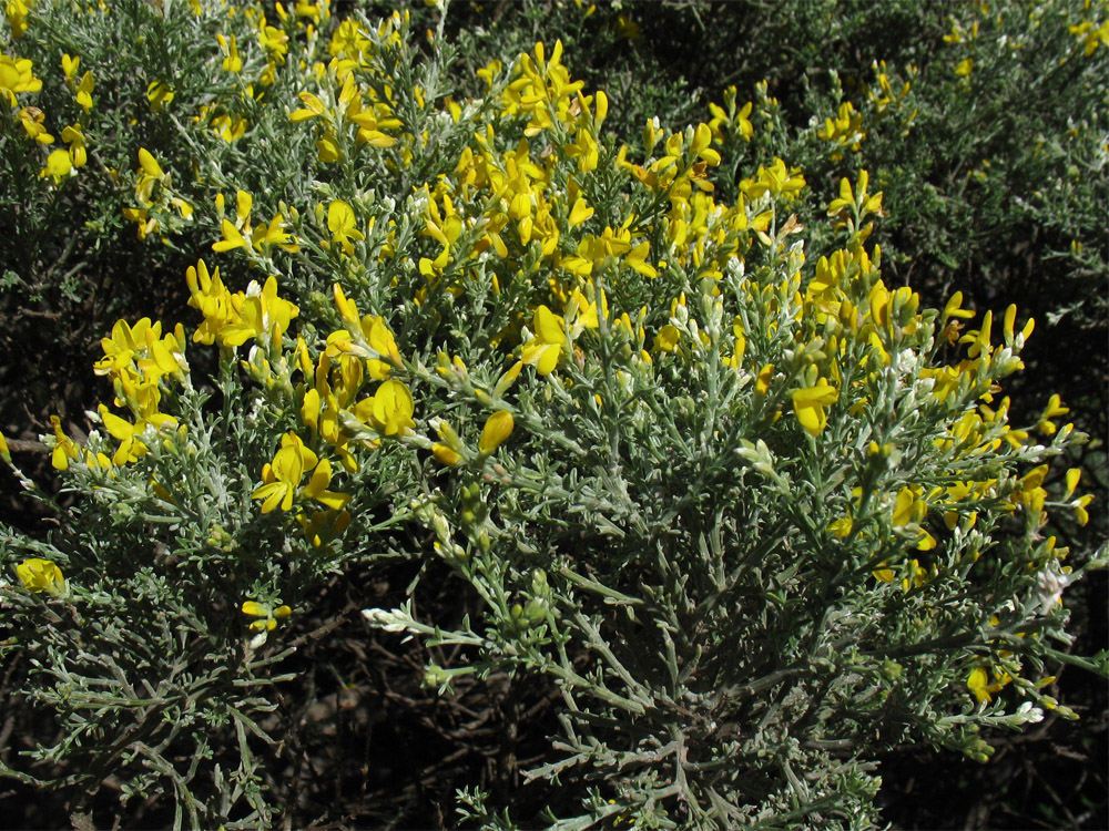 Часть кроны цветущего кустарника. Испания, Канарские о-ва, Гран Канария, муниципалитет Agüimes, ущелье Barranco de Guayadeque, сообщество термофильных кустарников. 26 февраля 2010 г.