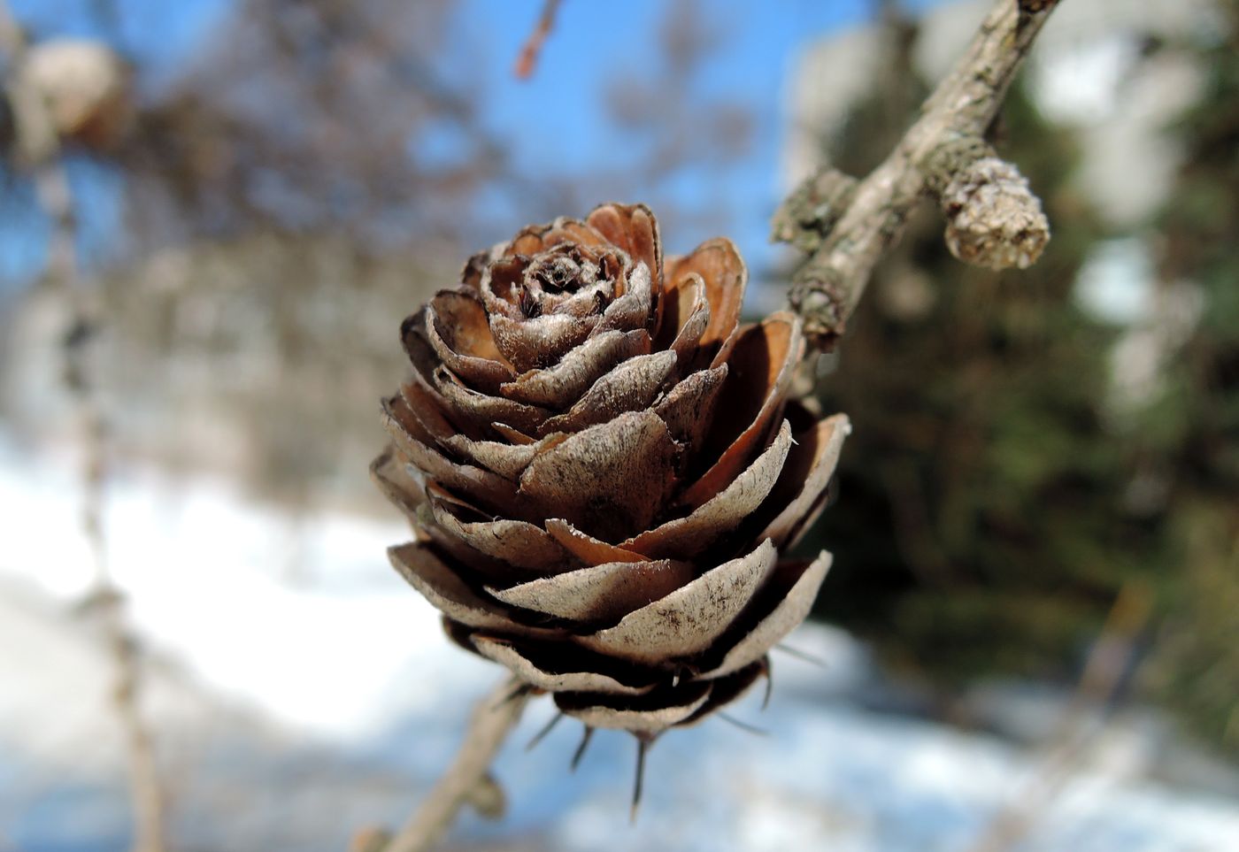 Шишка. Московская обл., г. Электрогорск, озеленение лицея, в культуре. 18.03.2018.