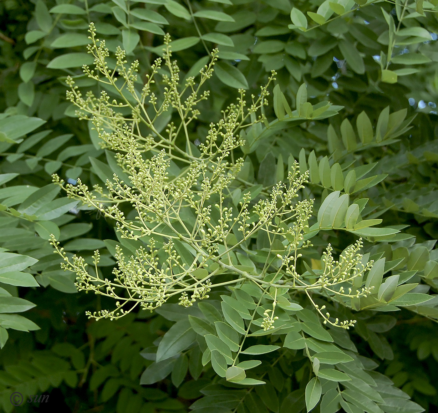 Соцветие в стадии бутонизации и листья. Луганск, территория дендропарка у лесомелиоративной станции. 12.07.2019.