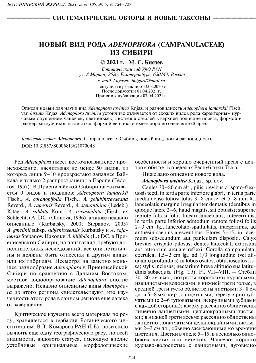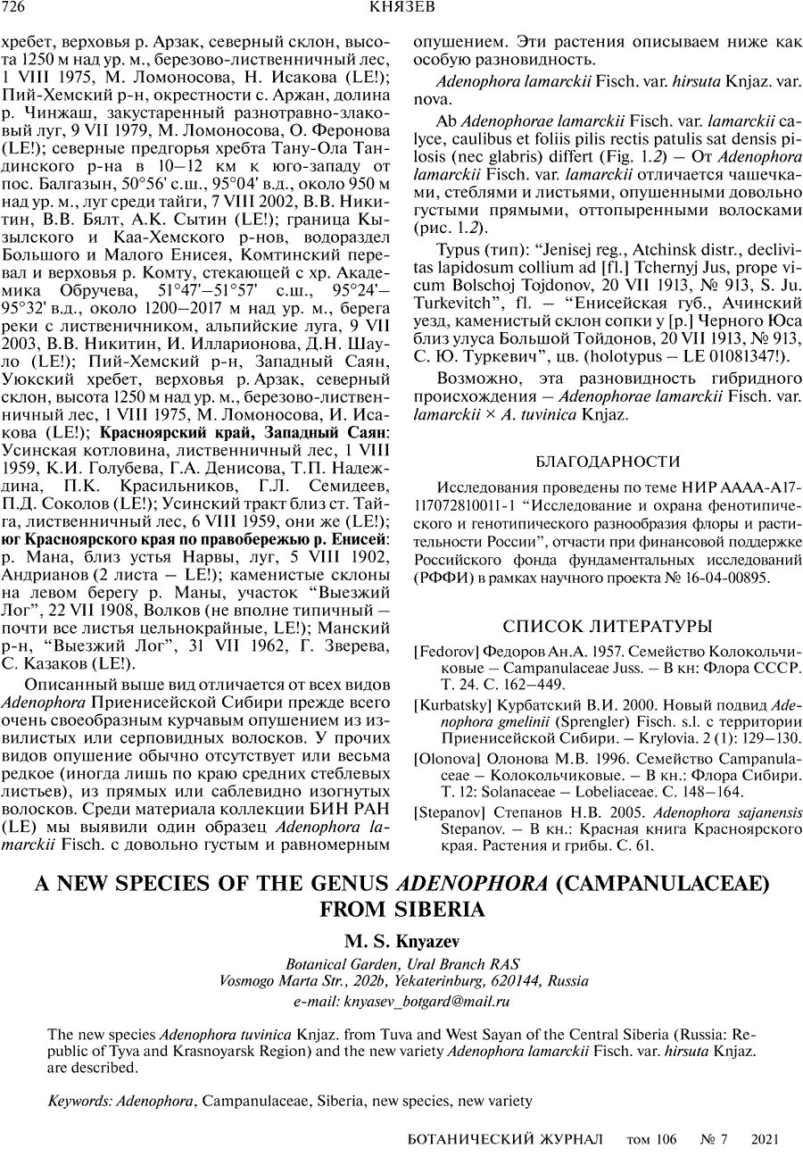 (Ботанический журнал 106(7): 724. 2021):