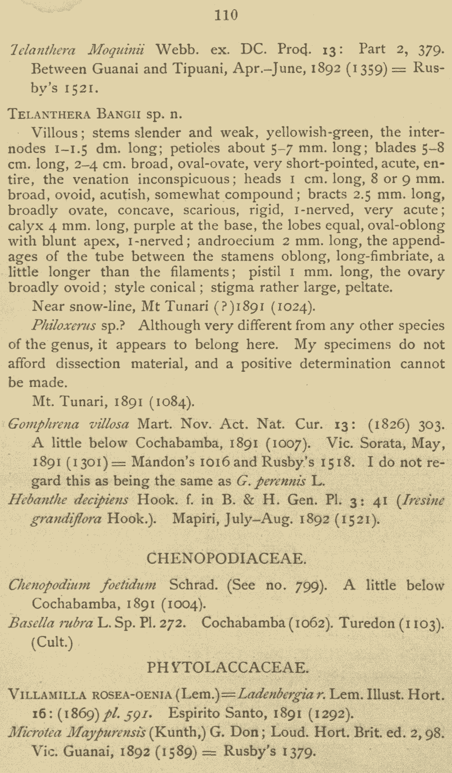 Протолог Telanthera bangii Rusby (Memoirs of the Torrey Botanical Club 6: 110. 1896):