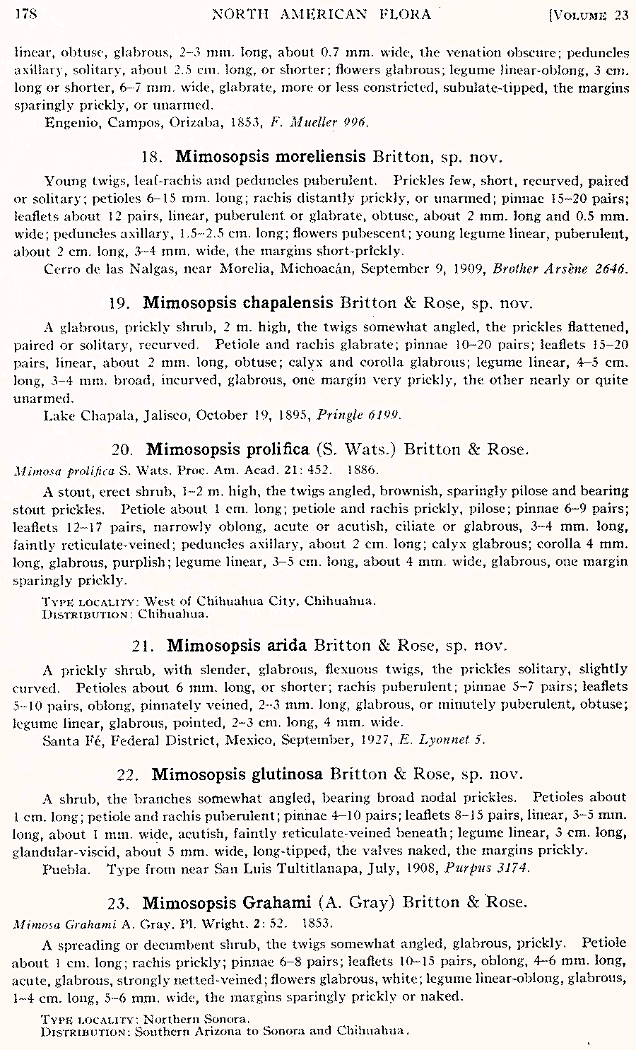Протолог Mimosopsis orizabensis Britton (North American Flora 23(3): 177. 1928) и Mimosopsis moreliensis Britton (North American Flora 23(3): 178. 1928):