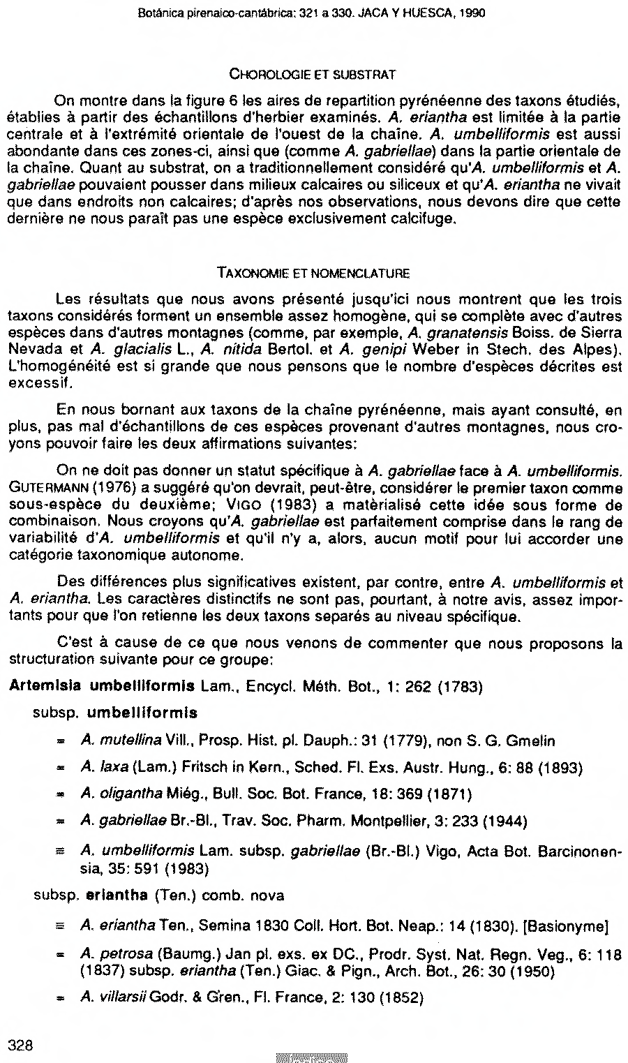 | Андрей Ковальчук | Обнародование комбинации Artemisia umbelliformis subsp. eriantha (Ten.) Vallès-Xirau & Oliva Brañas (Monografias del Instituto Pirenaico de Ecologia (Jaca) 5 [Botánico Pirenaico-Cantábrica]: 328. 1990):