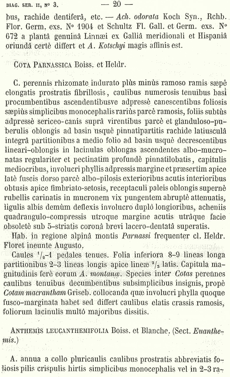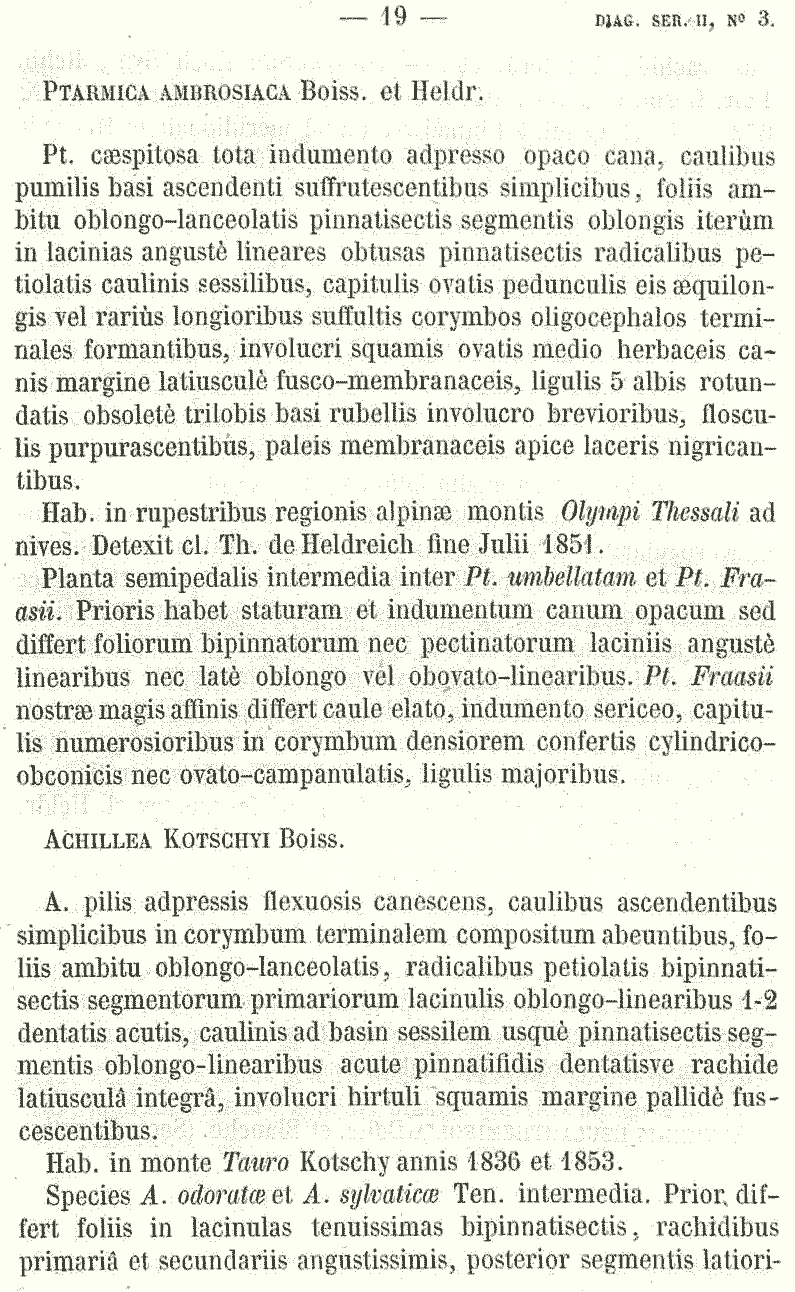 Протолог Achillea kotschyi Boiss. (Diagnoses Plantarum Orientalium novarum, ser. 2, 3: 19. 1856):