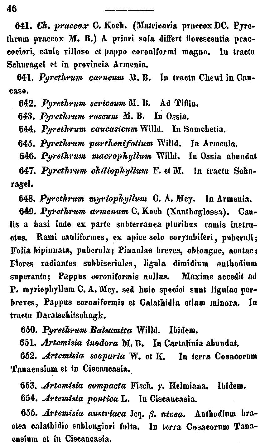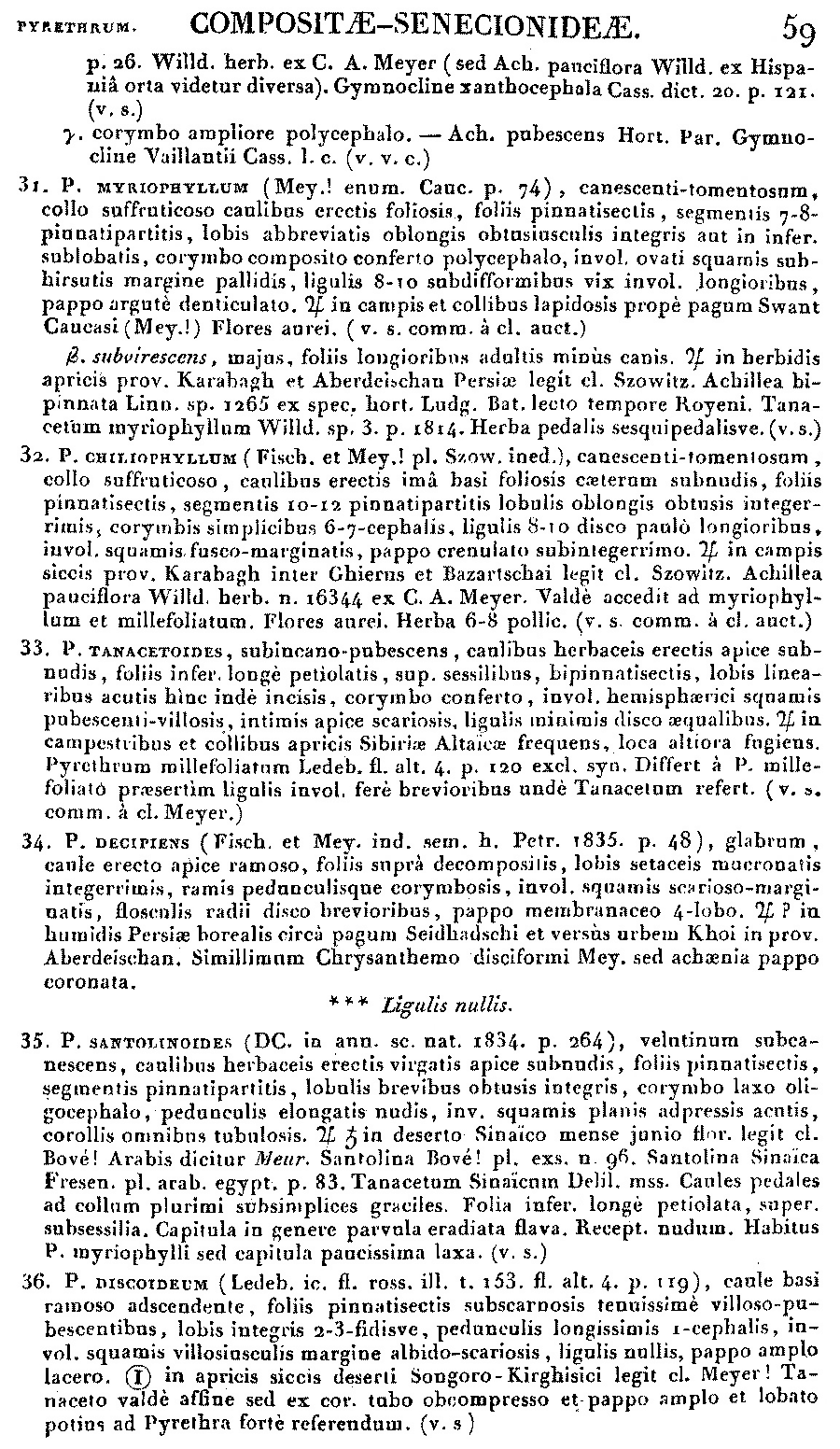 Протолог Pyrethrum chiliophyllum Fisch. & C.A. Mey. ex DC. (Prodromus Systematis Naturalis Regni Vegetabilis [A. P. de Candolle] 6: 59. 1838):