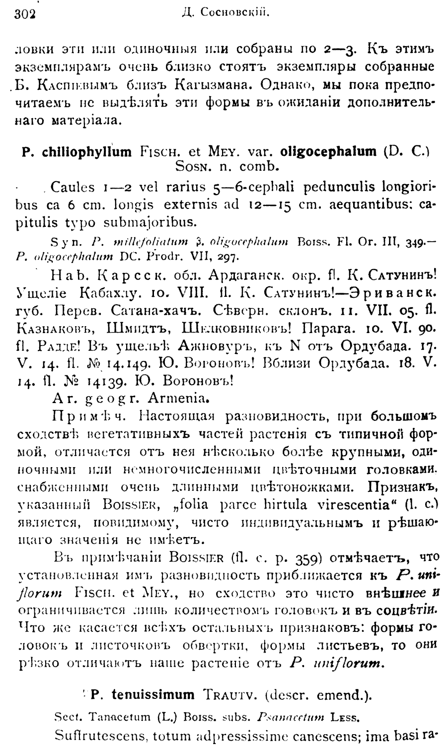 Протолог Pyrethrum cheilanthifolium Sosn. (Извѣстія Кавказскаго музея 10: 299. 1917):
