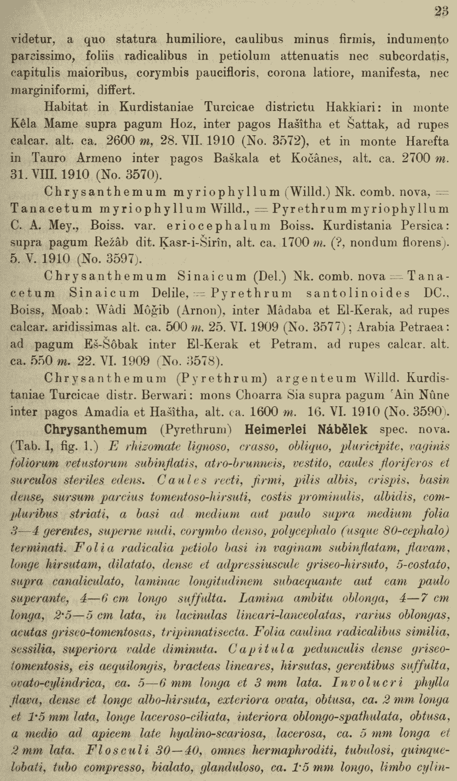Протолог Chrysanthemum heimerlii Nábělek (Spisy Vydávané Přírodovĕdeckou Fakultou Masarykovy University 52: 23. 1925):