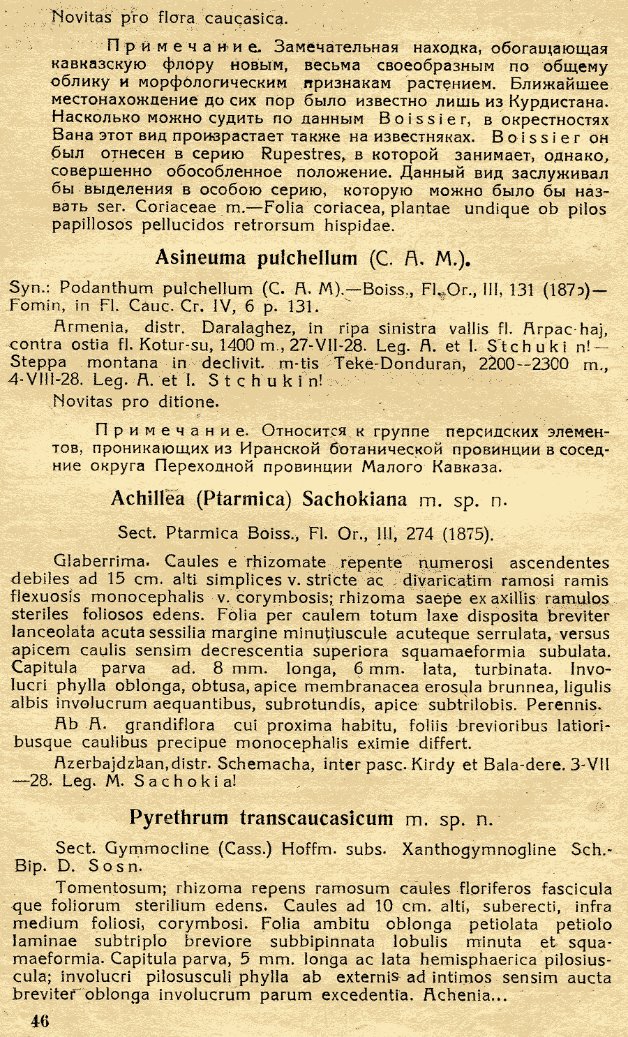 | Андрей Ковальчук | Протолог Pyrethrum transcaucasicum Sosn. (Труды Азербайджанского отделения Закавказского филиала Академии наук СССР. Сектор ботаники 1: 46. 1933):