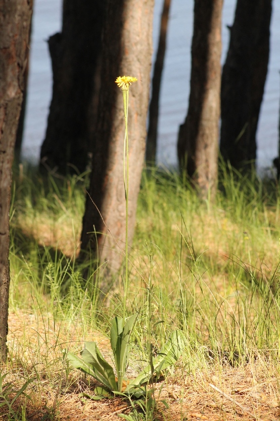 | Вячеслав Трофимов | У соснового бора встретил прошлым летом, предположительно, ястребинку (или ястребиночку). Высота 50-60 см. В прикорневой розетке 6 листьев с волнистыми краями, почти стелющиеся над почвой. Примерно на 1/4 высоты один листочек, на 1/2 высоты стебля ответвление с бутоном на вершине. На вершине стебля корзинка с желтым цветком. Интересно, ответвление это аномалия или отличительный признак вида? Снято 10.06.