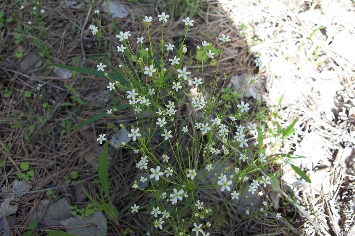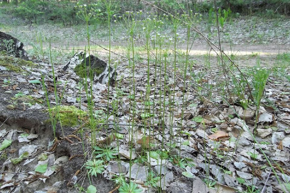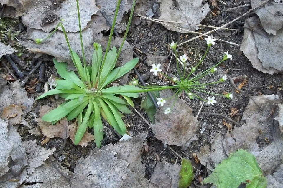 Растение снято 23.05.2022 г. на Верхней Террасе г. Ульяновск. Растение высотой от 15 до 35 см. Прикорневая розетка из листьев ланцетной формы, на цветоносе зонтик с белыми, 5-ти лепестковыми мелкими цветками. Растение произрастает по обочинам лесных дорог в сосновом бору.